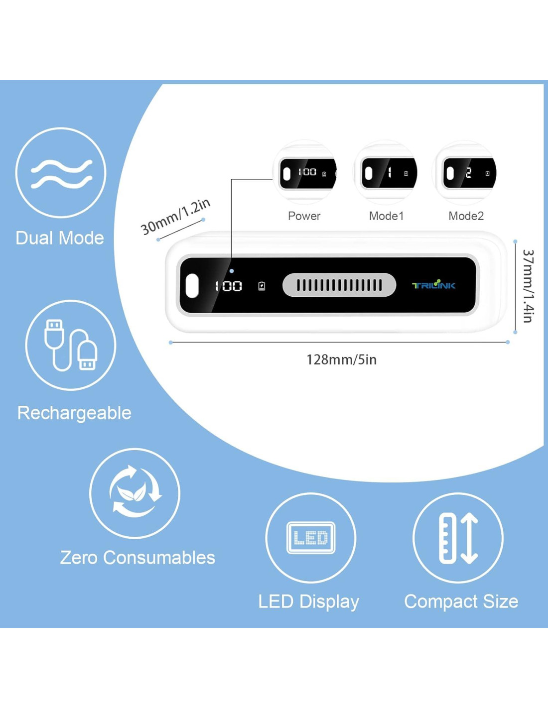 - Tamaño Compacto y Práctico - Adecuado para el hogar y los viajes, este eliminador de olores portátil viene en un tamaño ligero y compacto. Pesa solo 0.2lbs (93g) con dimensiones de 12.7cm x 3.6cm x 3.0cm, lo que significa que se puede mover en cualquier momento, encajar en cualquier lugar y ahorrar más espacio en tus refrigeradores y armarios de zapatos.