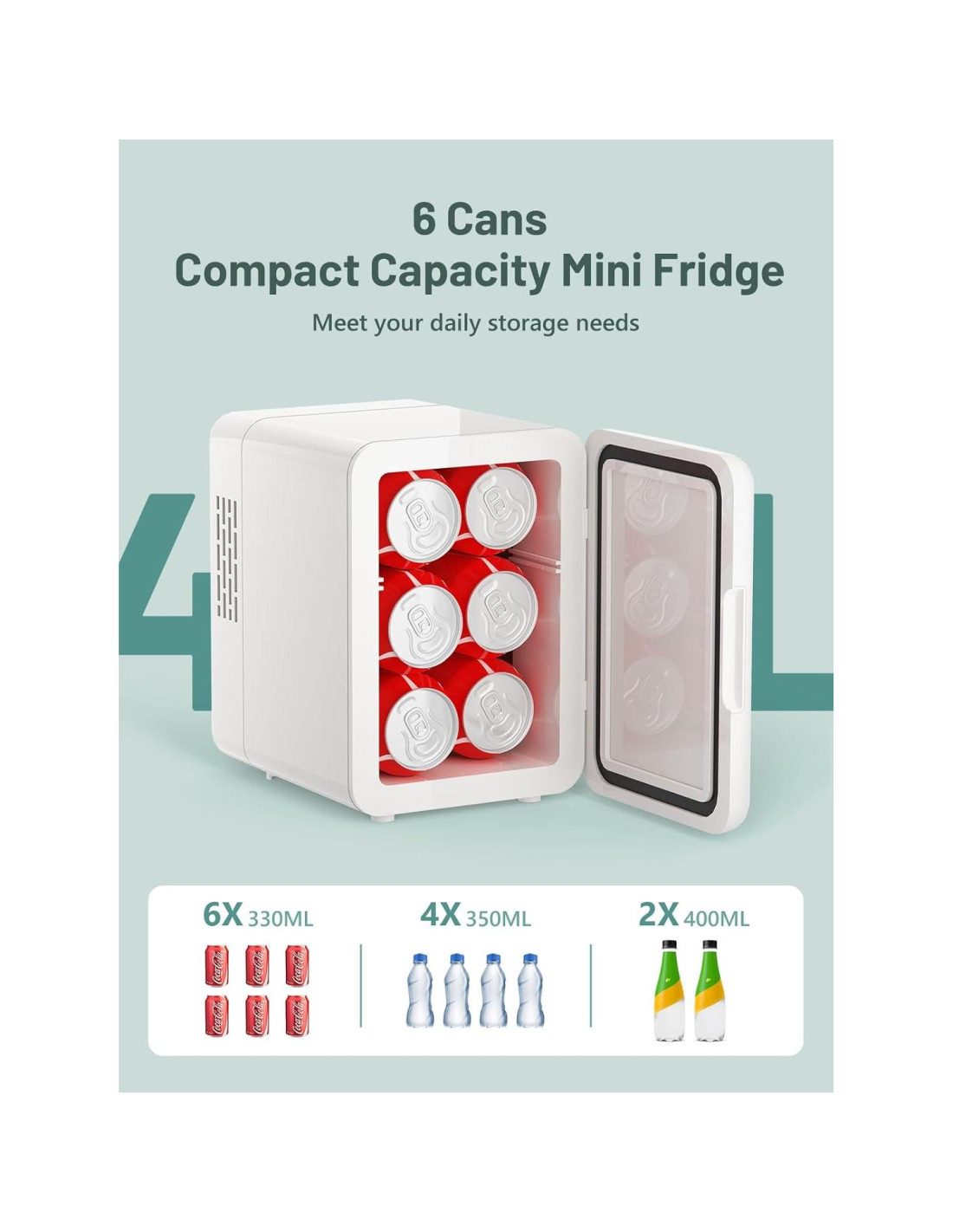 - Compatibilidad de Múltiples Fuentes de Energía y Portabilidad: Incluye adaptadores de 110V AC (hogar) y 12V DC (coche) para uso universal. Llévala de tu dormitorio a tu coche sin esfuerzo, asegurando bebidas frías en viajes por carretera o cosméticos frescos durante el viaje. El asa incorporada mejora la portabilidad.