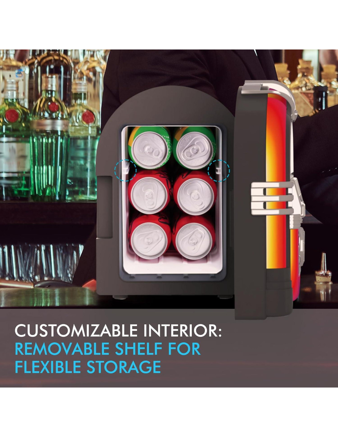 - Iluminación LED Dinámica: ¡Inicia la fiesta con esta mini nevera retro con altavoz Bluetooth integrado! Crea una atmósfera inmersiva y divertida sin importar a dónde te lleve el día con las luces LED dinámicas!