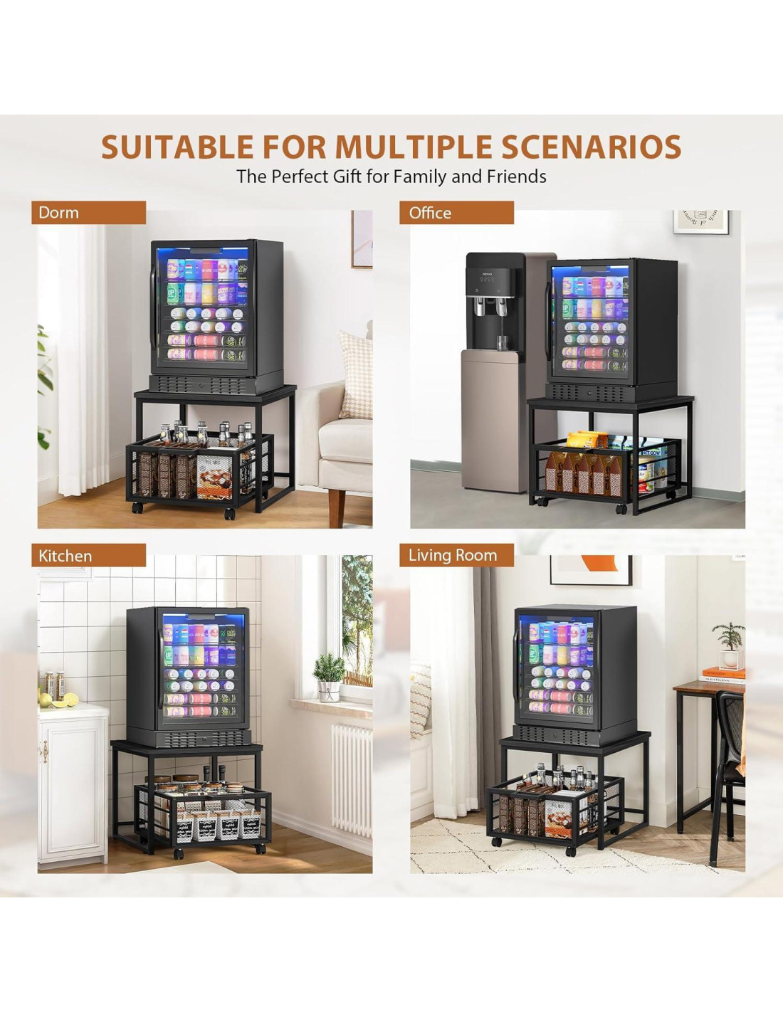 - Soporte para mini nevera: Eleva tu mini nevera o pequeño enfriador/congelador para liberar espacio en tu dormitorio, oficina o bar en casa. Perfecto para crear una configuración más organizada y espaciosa