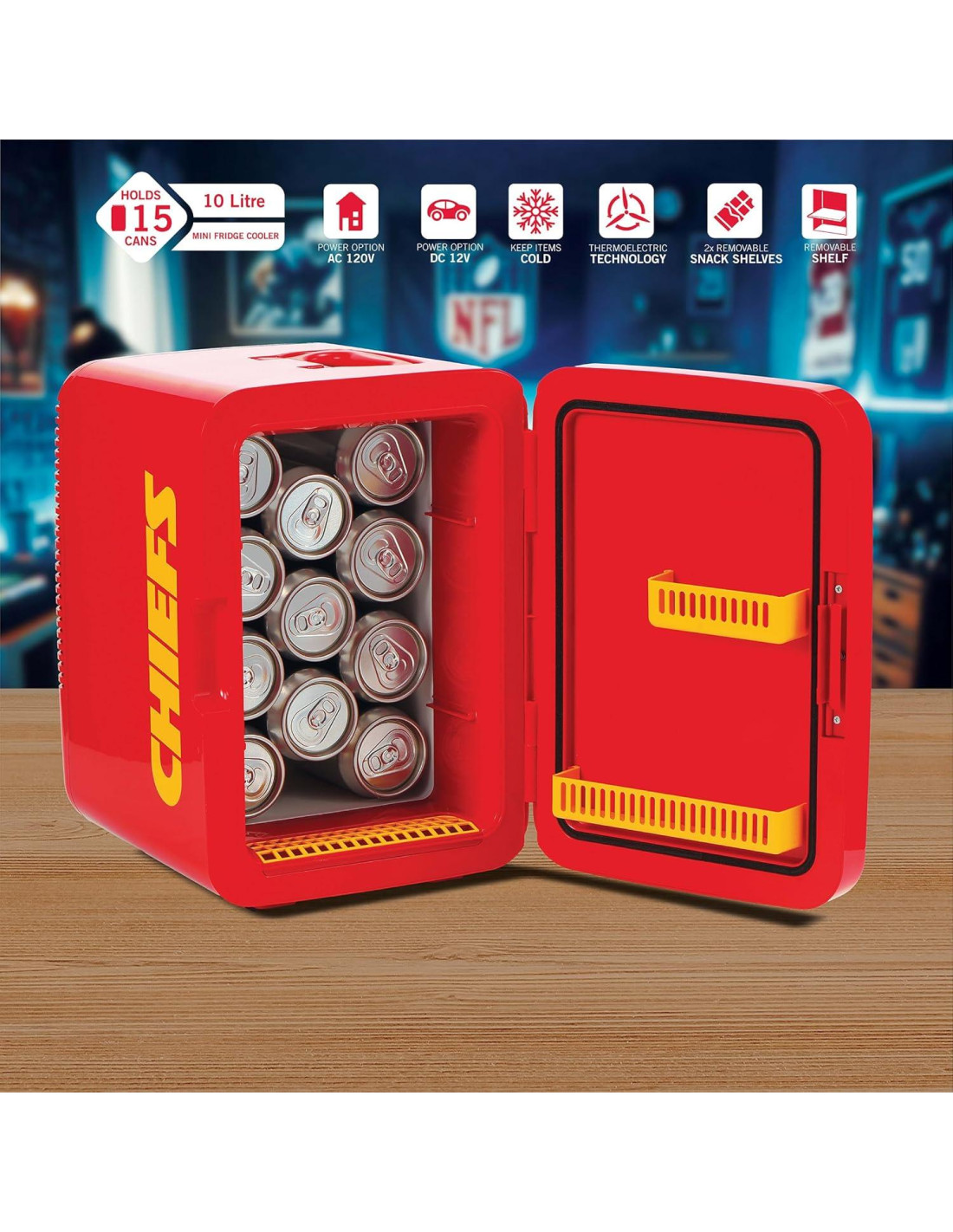 - Swag Oficialmente Licenciado del Equipo: La mini nevera presenta el logo de los Chiefs y los colores del equipo (+ el logo de la NFL). Gran Juego: Capacidad de 10L-sostiene hasta 15 latas de soda de 12 oz. o un montón de bocadillos.