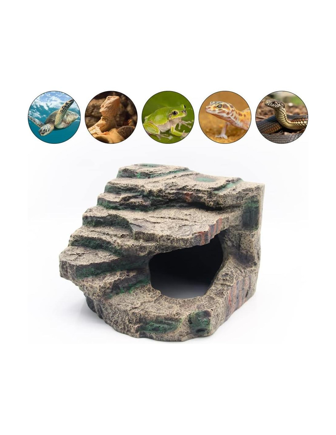 - Refugio Seguro: La cueva proporciona un área segura perfecta para tu serpiente, donde puede descansar, mudar, reproducirse y esconderse.