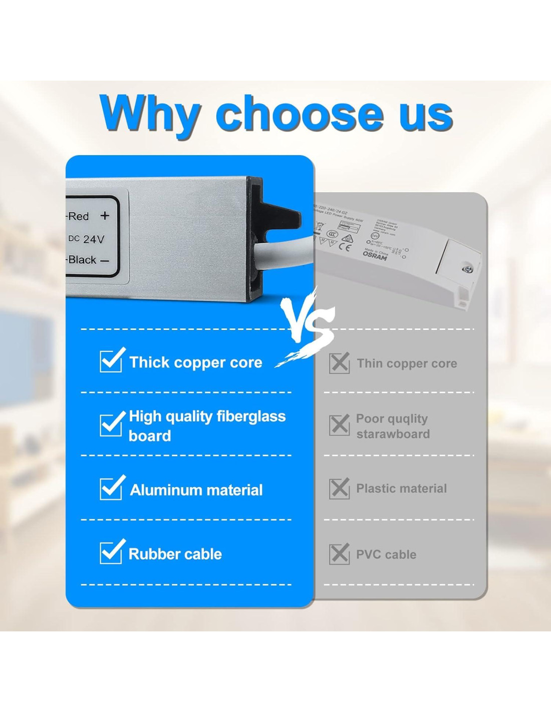 - Convierte 110V AC a 24V DC, Funciona a -20C a +60C y 20% a 90% HR (no condensante), uso amplio para luces de tira LED, bombillas LED y otras luces LED de 24V DC (<40W)