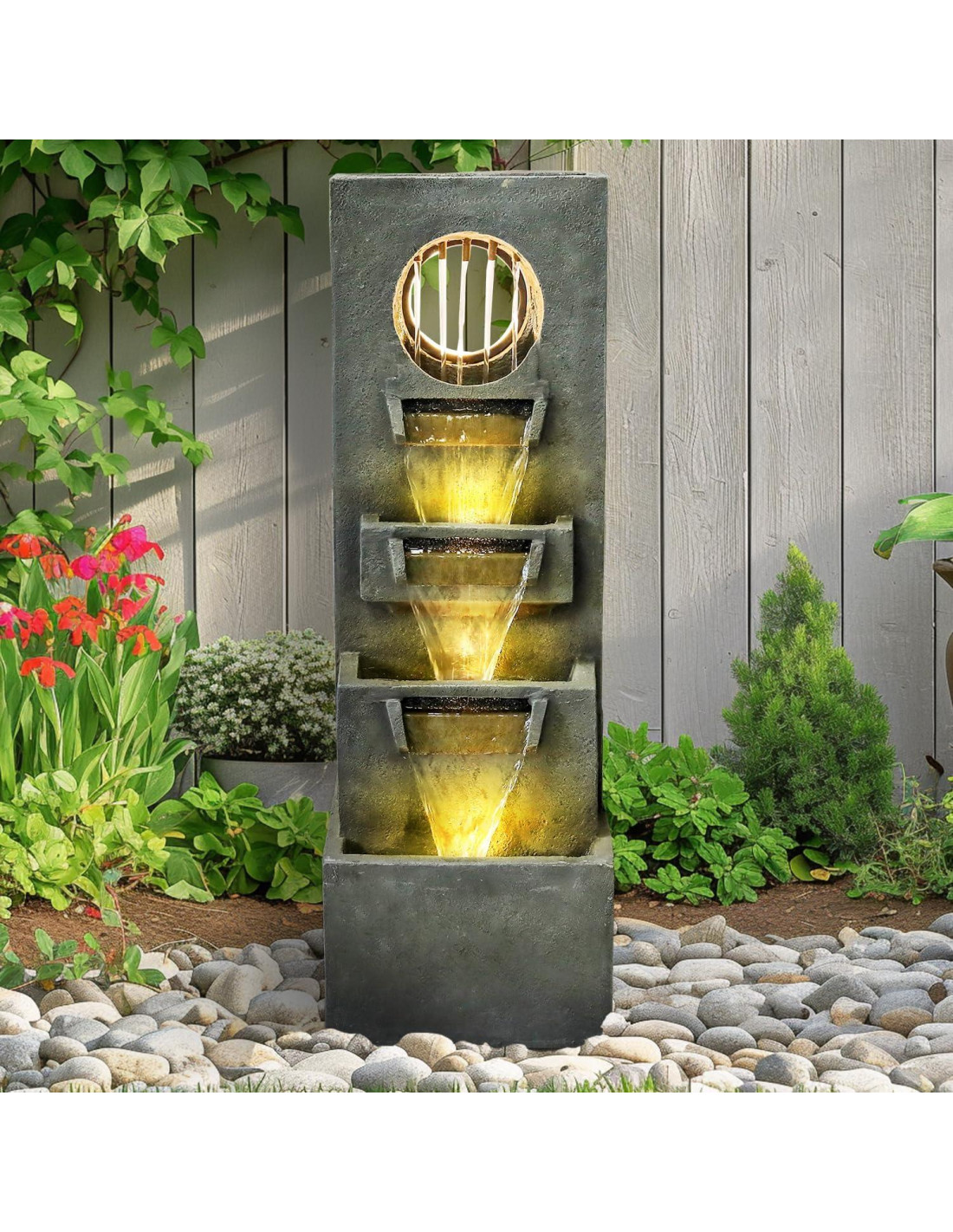 - Material: La fuente de jardín contemporánea está hecha de resina, un material sólido y resistente a la intemperie comúnmente utilizado para decoración en interiores y exteriores.