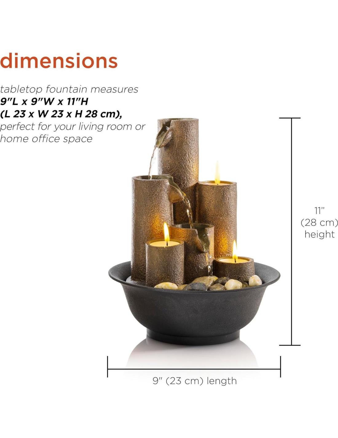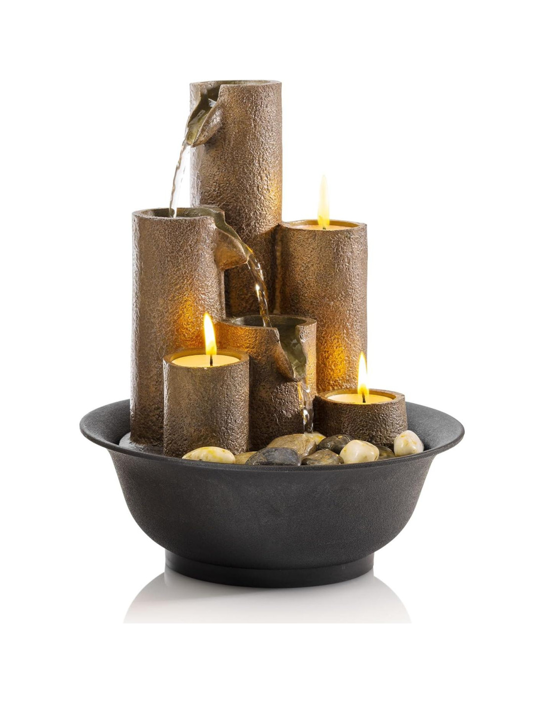 - ILUMINACIÓN ROMÁNTICA: La Fuente Alpine WCT202 incluye tres velas de té que se pueden colocar en los pilares para una fuente de luz suave e íntima. Estas velas añaden un toque romántico a la fuente, proporcionando un brillo cálido y acogedor que complementa el flujo de agua relajante. Perfecta para crear una atmósfera acogedora en tu dormitorio, sala de estar u oficina, la combinación de agua fluyendo y luz de vela ofrece un refugio tranquilo.