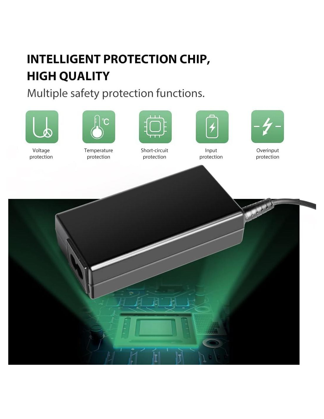 - El rango de voltaje de entrada de AC 100-240V permite su uso en diferentes países y regiones, corriente de salida de DC 19V 3A 3.42A 2.1A para una conversión de energía eficiente.