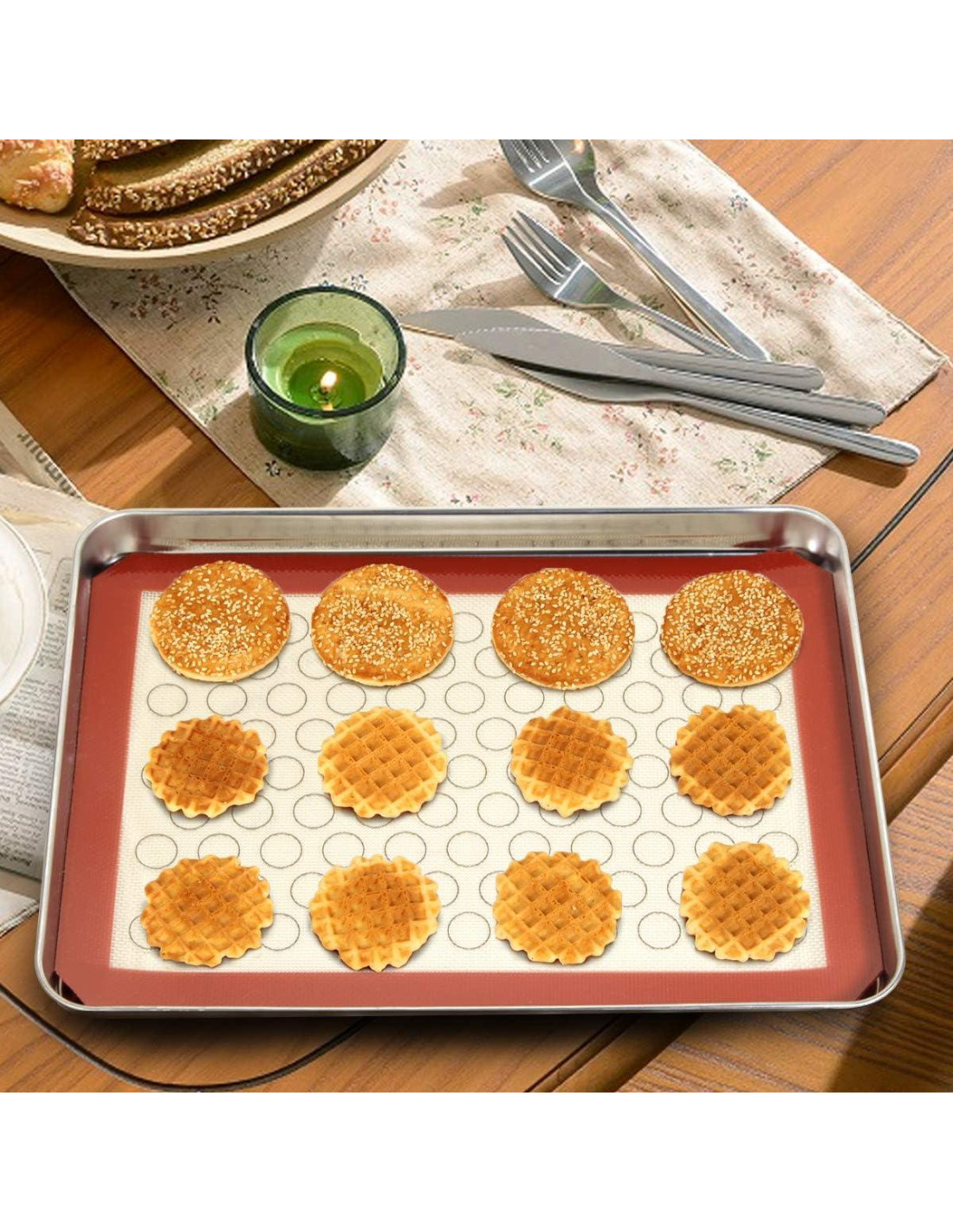 - MATERIAL PREMIUM: Estas bandejas para hornear están hechas de acero inoxidable 18/0 de alta calidad sin recubrimiento químico tóxico; material resistente a la oxidación y duradero hace que estas bandejas sean perfectas para el uso diario. Y estos tapetes de hornear antiadherentes están hechos de silicona de grado alimenticio y fibra de vidrio reforzada; no es necesario agregar calorías de aceites, aerosoles o mantequilla