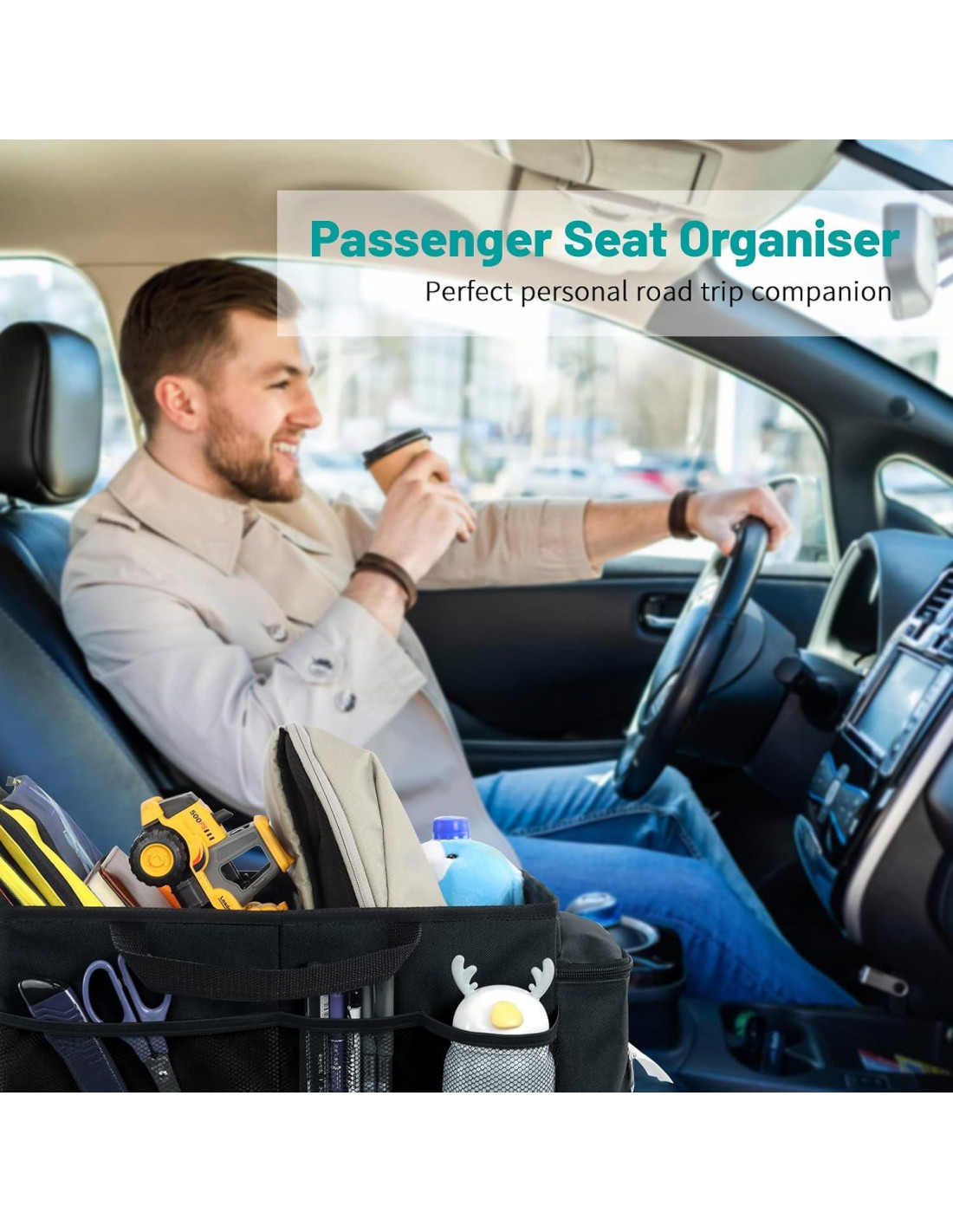 - [El tamaño adecuado del organizador de asiento de coche] La caja de almacenamiento de coche tiene un tamaño adecuado, que se puede usar como organizador de asiento delantero de coche, colocada en el medio del asiento trasero como organizador de asiento trasero, o colocada en el maletero o en el suelo del coche para agregar más espacio de almacenamiento en el coche. Los mangos diseñados en la parte delantera y trasera del organizador de coche nos permiten llevar la caja de almacenamiento a cualquier lugar de manera conveniente.