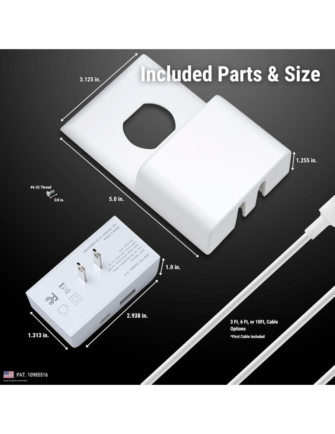 - Incluye: Cubierta de Cerradura, Cargador Rápido Dual, 1x Cable de Carga y Tornillo de Reemplazo