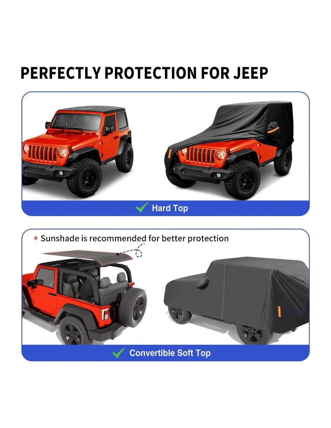 - [Protección Todo Clima Mejorada] Las fundas exteriores completas FiveFox pueden proporcionar protección total en todas las estaciones. Como un garaje móvil, protege tu Jeep de los rayos UV, arena, polvo, granizo, hojas, ramitas, nieve, lluvia, escarcha, excrementos de aves y animales