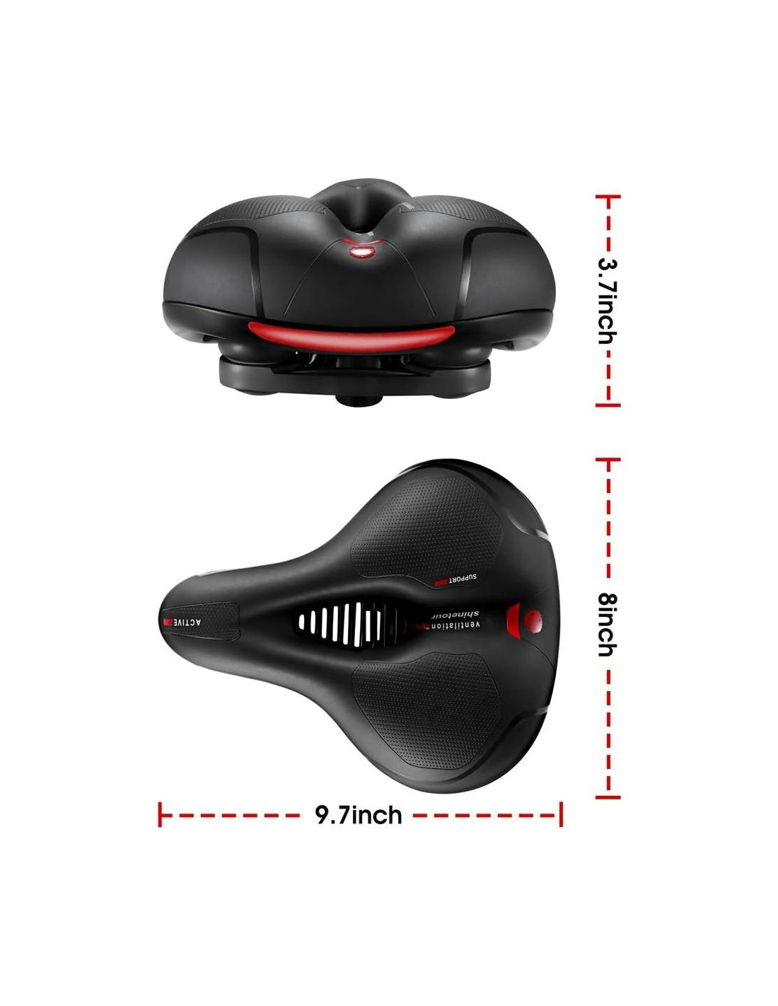 - DOBLE BOLA DE ABSORCIÓN DE CHOQUESLas dos bolas de absorción de choques colocadas debajo del asiento de la bicicleta aseguran absorber los impactos provenientes de los baches, agujeros o cualquier terreno difícil por el que estés montando. ¡Disfruta de tu saludable y feliz paseo de larga distancia!