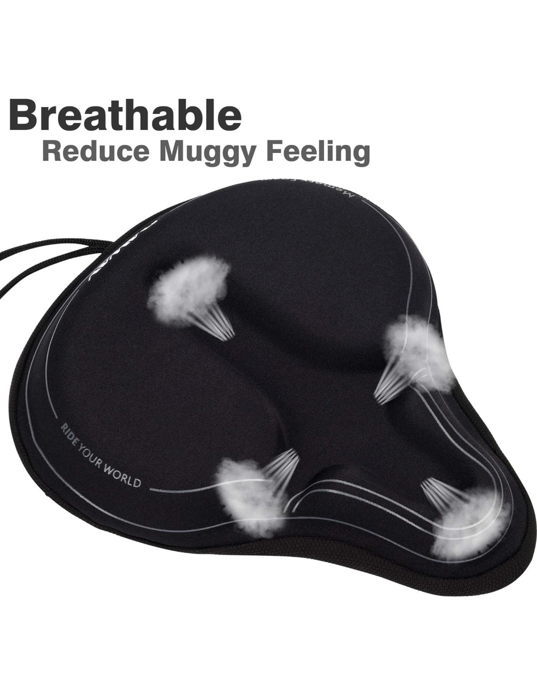 - Funda de asiento de bicicleta sobredimensionada más cómoda, mejor acolchado de espuma de memoria - No se deforma fácilmente. La funda del sillín de bicicleta es extra suave, ofrece el soporte más completo y cómodo para el cuerpo, puede alcanzar un estado de presión cero, ralentiza la compresión de los vasos sanguíneos y nervios, tan cómoda como sentarse en un sofá, mejor protege la parte trasera y la columna, disfruta de pedalear sin incomodidad
