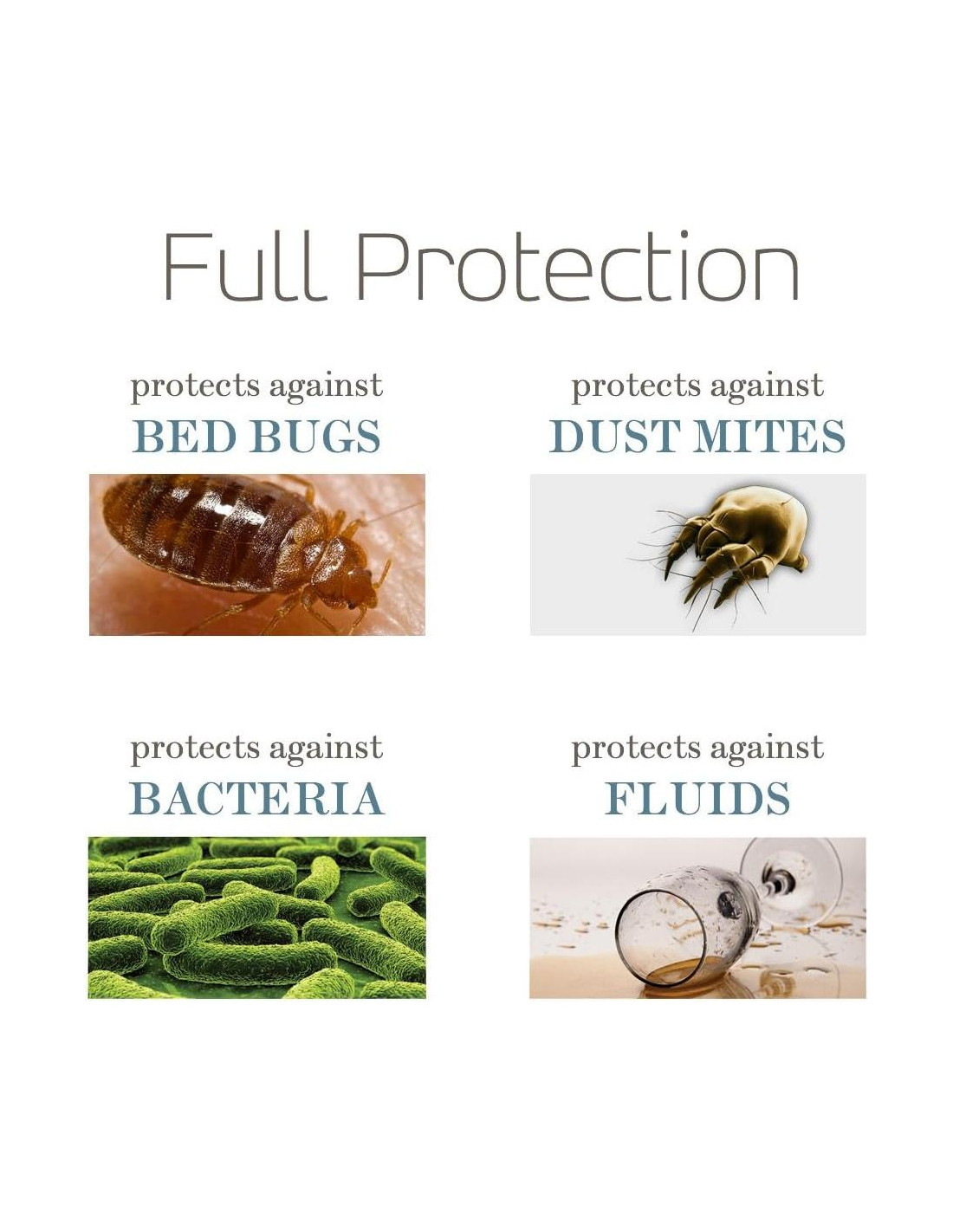 Las Fundas de Box Spring SafeRest Protegen Tu Box Spring Contra Líquidos A través de una extensa investigación y desarrollo, SafeRest ha creado una mejor manera de proteger tu box spring Protección Completa Para Tu Box Spring En lugar de desechar costosos juegos de colchones no protegidos, las fundas SafeRest sellan y protegen tu box spring. Diseñadas Específicamente y Probadas en Laboratorio Las fundas de box spring SafeRest, con un suave material de superficie de poliéster y un recubrimiento de membrana impermeable, fueron diseñadas específicamente y probadas en laboratorio para proteger tu colchón Característica Exclusiva de Cierre Micro 360 de SafeRest La característica patentada 360 Secure de SafeRest ofrece la máxima protección eliminando el riesgo de que el viajero del cierre final se retraiga exponiendo el box spring. Esto se logra asegurando el viajero final con una solapa de Velcro que lo cubre por todos los lados. Lavar a máquina con tus sábanas, secar a baja temperatura. No planchar. Las fundas de box spring SafeRest no contienen vinilo, ftalatos, retardantes de llama ni PVC.