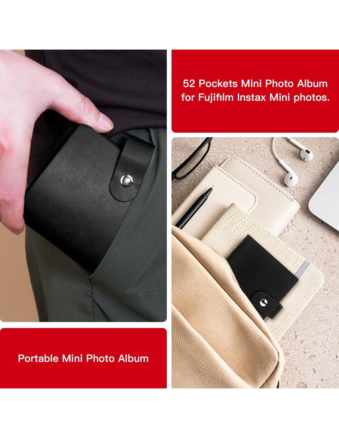 - ACERCA DEL ÁLBUM: El álbum de fotos mini de 52 bolsillos está hecho de cuero de calidad, lo que es lo suficientemente duradero para durar años. Las fotos se almacenan en páginas claras, seguras para fotos, libres de ácido y sin PVC, ¡protegerán tus recuerdos preciosos!
