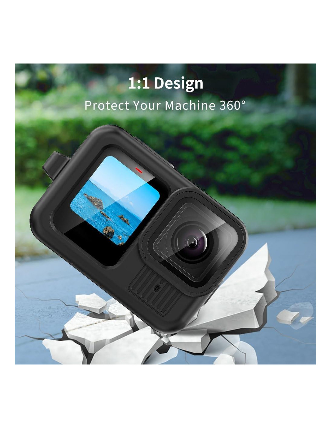 - Diseño Especial para HERO 13 Negra: La funda de silicona se ajusta perfectamente al marco de la cámara Go Pro Hero 13 Negra para lograr una instalación sin costuras y precisión. Una cuerda de seguridad está colgada en la funda de silicona para proporcionar más protección a la cámara. Con la cubierta lateral de repuesto con una pequeña puerta lateral, es más fácil cargar. Puede prevenir que el polvo y las manchas de agua salpicada entren en la cámara.