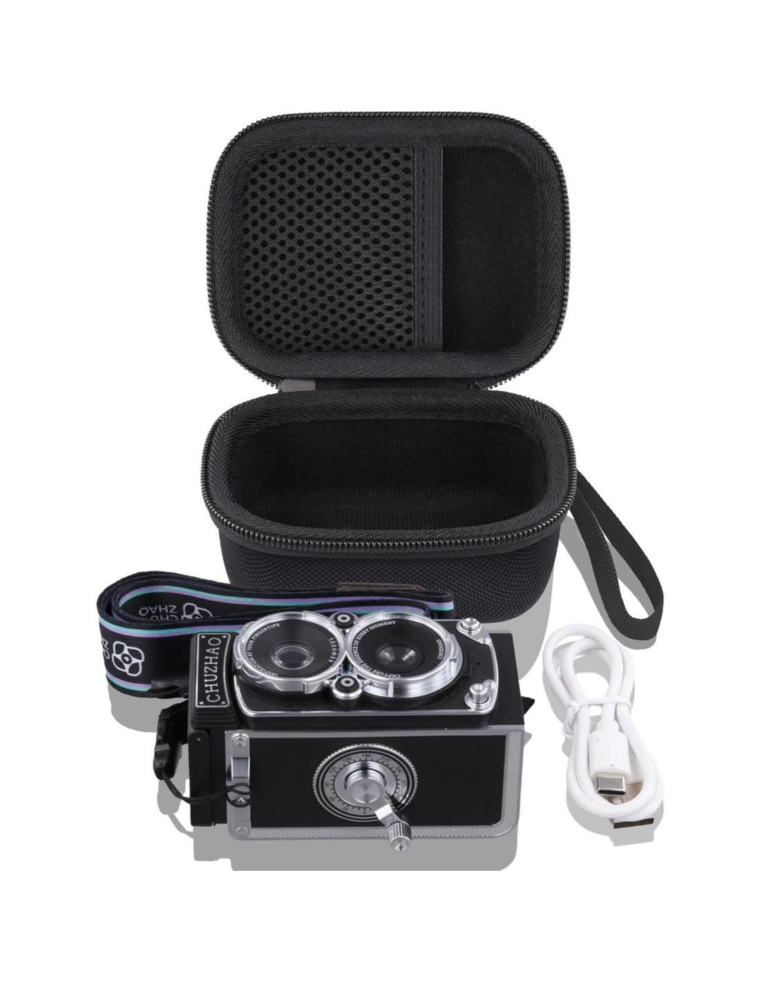 - Fácil de llevar: La funda de viaje para Cámara Mini Vintage Estilo TLR 12MP 1080P CHUZHAO viene con un mango cómodo. El mango resistente puede llevar la Cámara Mini Vintage Portátil en movimiento. La Funda para Cámara Digital Estilo Reflex de Doble Lente Retro Portátil CHUZHAO es compacta y puede caber fácilmente en una mochila, ocupando poco espacio.