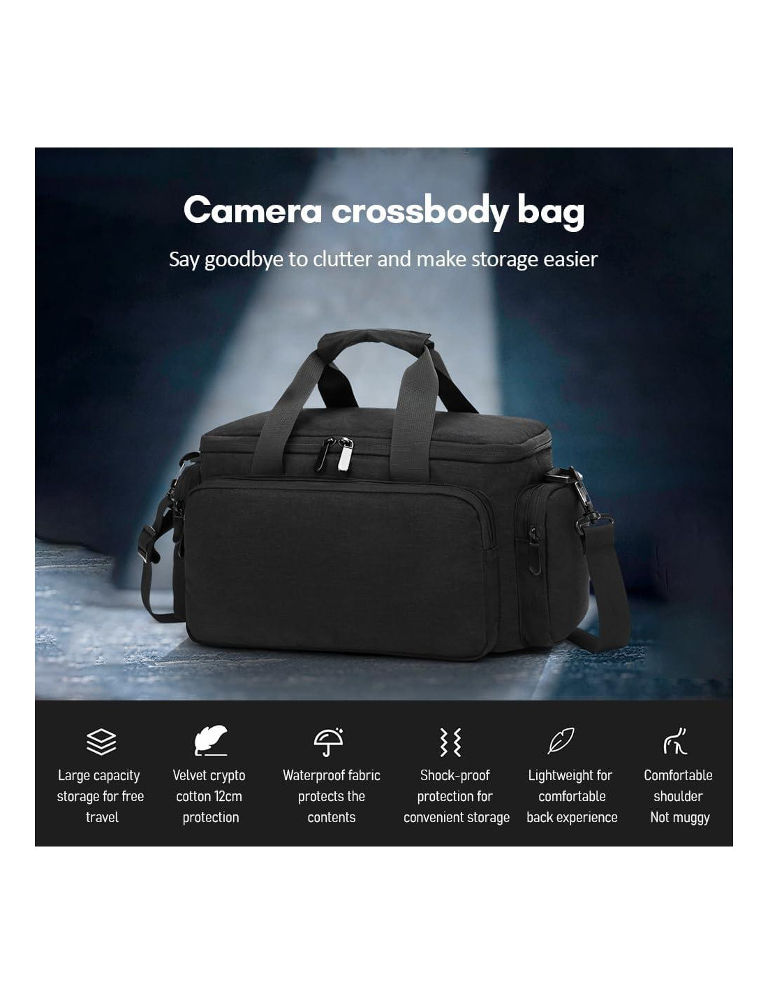 - [Bolsa de cámara] La bolsa de cámara versátil se puede usar como una bolsa de hombro única o cruzada, proporcionando un ajuste cómodo y ergonómico. El diseño robusto y elegante de la bolsa asegura que tu cámara esté bien protegida mientras estás en movimiento.