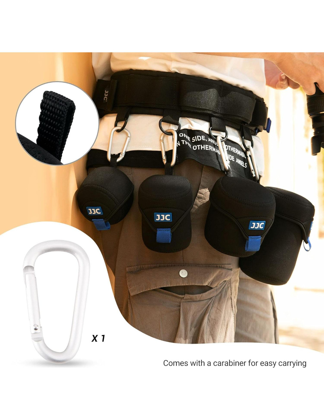 - Opción de Transporte: Adjunta la funda para lente a tu bolsa o cinturón mediante el mosquetón incluido. Un buen compañero para disparos al aire libre.