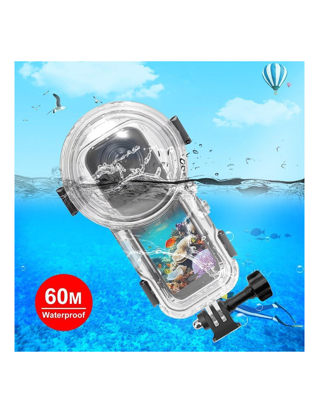 - Amplio Uso: la carcasa protectora impermeable se puede instalar y quitar rápidamente. La base del soporte adaptador con interfaz de tornillo de 1/4", compatible con el soporte de cámara insta360 x5 y otros accesorios, la carcasa de buceo 360 x5 es 360 completamente invisible sin puntos ciegos.
