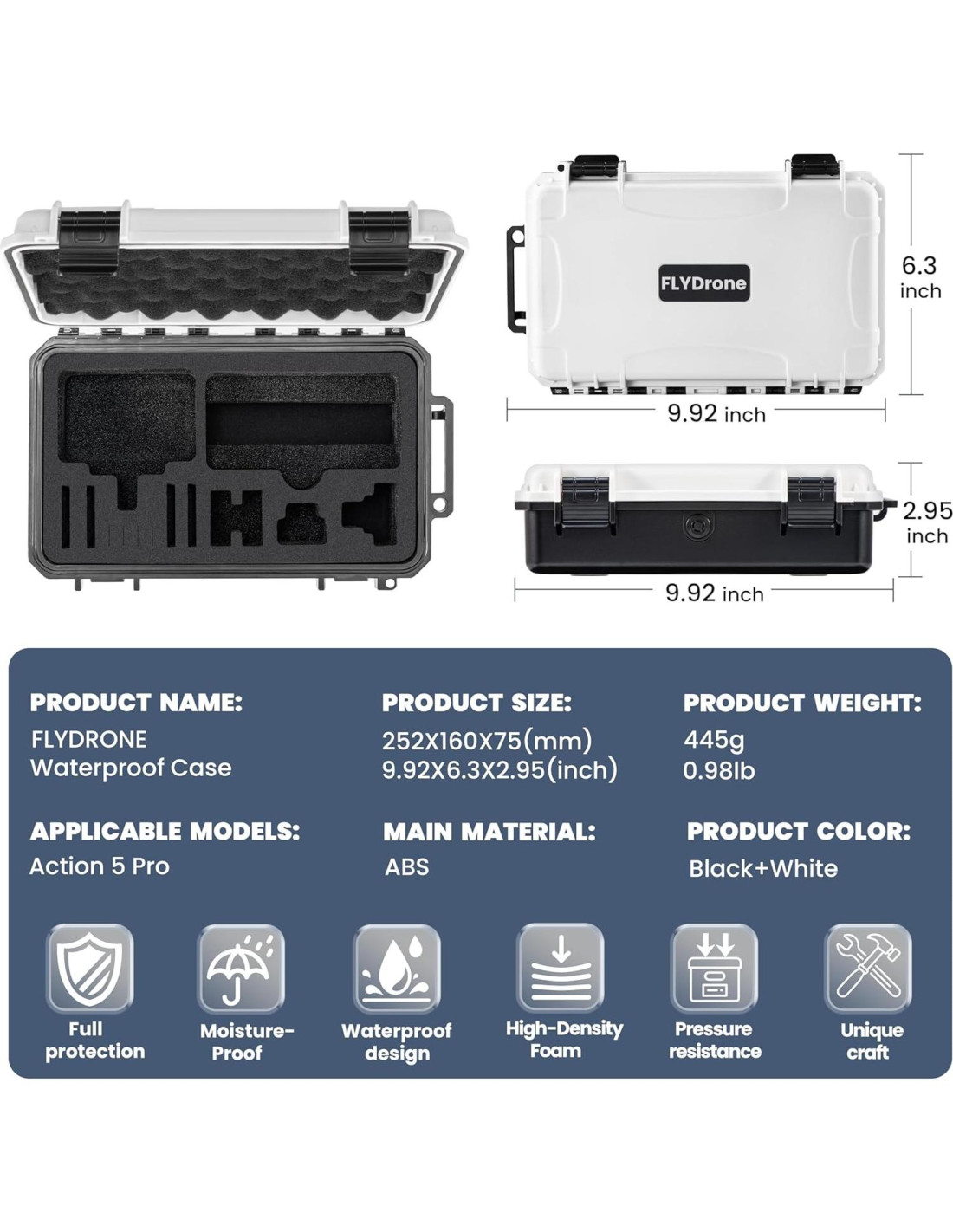 - Diseño Personalizado: Este estuche impermeable incluye esponjas precortadas personalizadas, correa de muñeca ajustable, gancho de metal. Combinación de negro y blanco personalizada, a la moda y llamativa. Perfecto para accesorios de cámara DJI Osmo Action 5 Pro/4.
