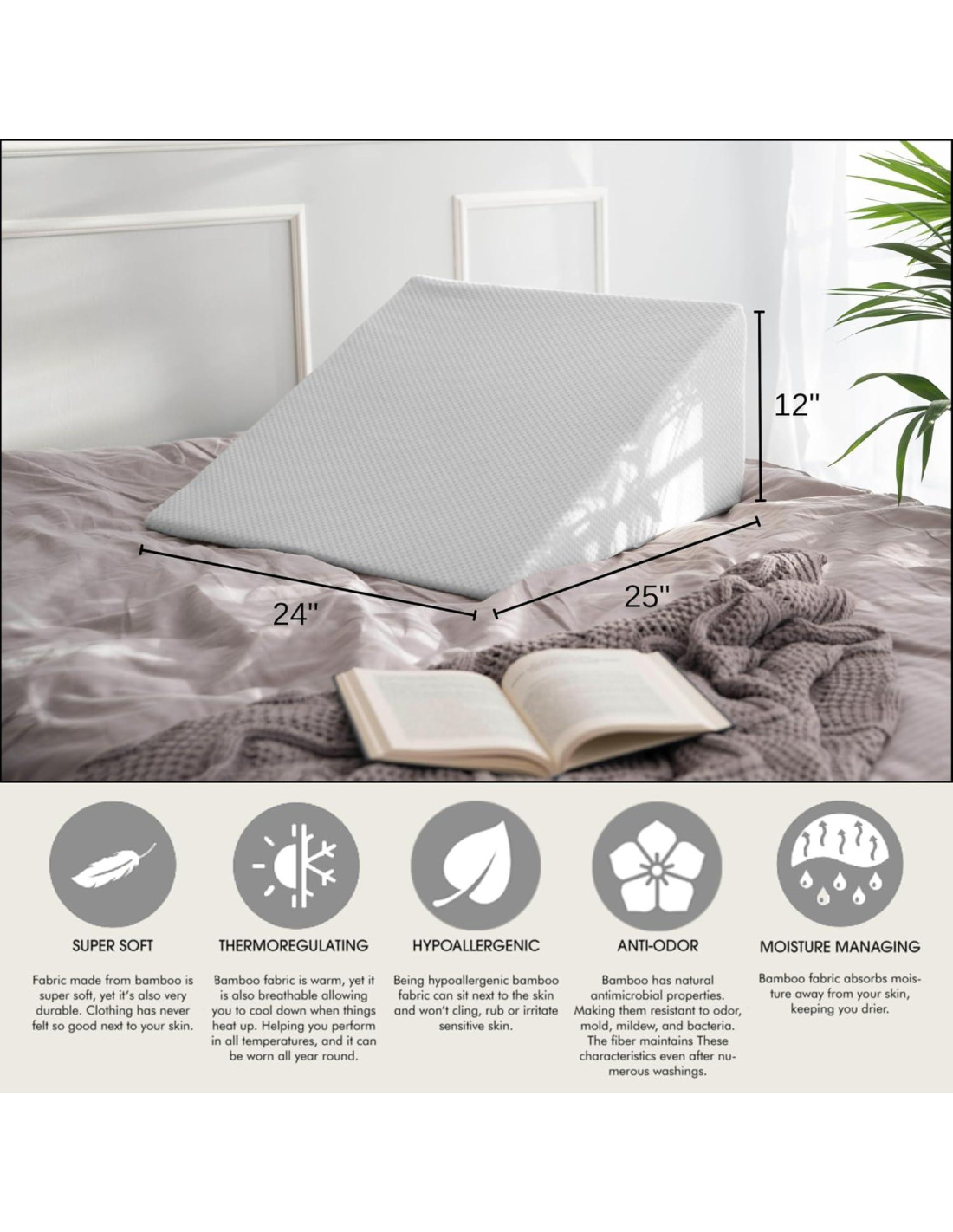 - AQUÍ PARA TU COMODIDAD: Si alguna vez tienes preguntas o no estás satisfecho con tu funda de almohada en forma de cuña, estamos a un correo de distancia para ayudarte. Nuestras fundas para almohadas en forma de cuña cuentan con una capa superior elaborada con fibras de bambú, provenientes de uno de los recursos vegetales de más rápido crecimiento y más renovables: las plantas de bambú.