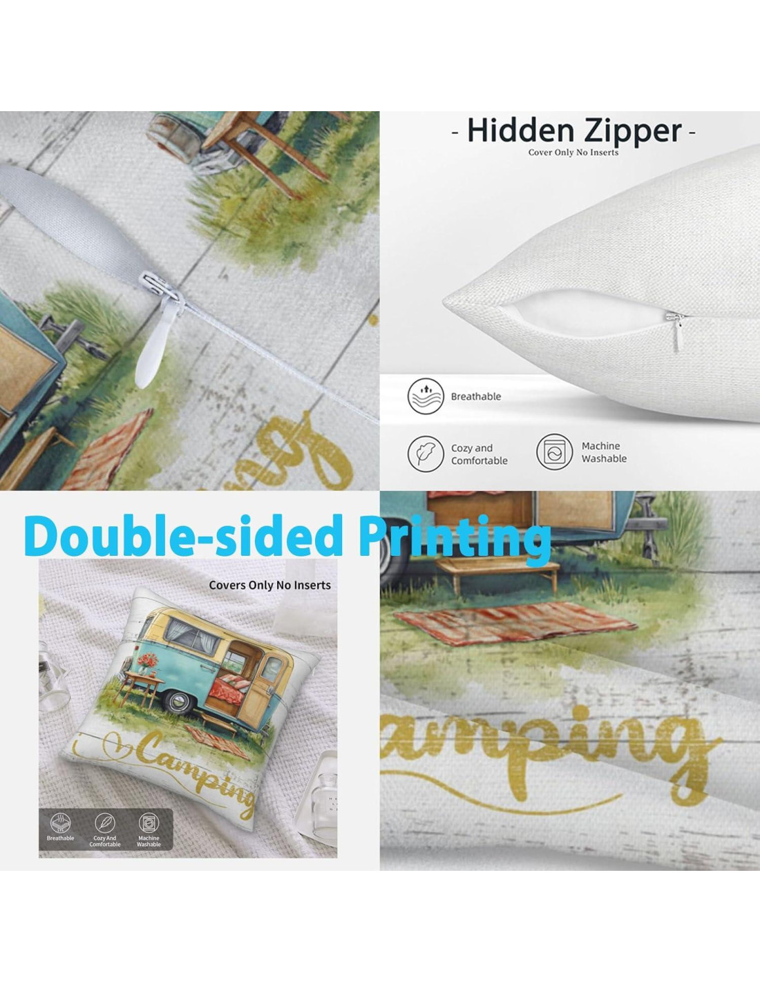 [Soothirty] Nuestra especialización radica en diseñar fundas de almohada adaptadas para la decoración del hogar. [Tamaño:] 18x18 Pulgadas. [Material:] Hecho de lino blanco duradero y suave. [Característica:] Presenta imágenes de remolque de viaje retro de camper rústico vintage. El diseño utiliza impresión a doble cara, y los patrones están impresos en alta definición, lo que los hace resistentes a la decoloración. [Aspectos a tener en cuenta:] [*] La cremallera está oculta y funciona sin problemas. [*] Permite una fácil inserción y extracción de los rellenos de almohada. [*] Se puede lavar a máquina y secar en secadora fácilmente. (No usar blanqueador). [*] El paquete incluye 1 funda de almohada. Solo fundas-los rellenos de almohada no están incluidos. [Adecuado para lugares:] Las fundas de cojín se pueden usar para fiestas, carnavales, decoración del hogar, decoraciones de jardín. Las fundas decorativas también se pueden usar para decorar el dormitorio, estudio, cama, sofá, cojín, silla, etc. Amigable con niños y mascotas: Gracias al material, la funda de almohada no irrita la piel, así que no te preocupes de que la tela sea dañina para niños y mascotas. Pequeños consejos: Por favor, no coloques el relleno de almohada en la funda horizontalmente, ya que puede causar daños a la funda. Por favor, dobla el relleno de almohada antes de colocarlo en la funda. Si tienes alguna pregunta o estás interesado en nosotros, no dudes en contactarnos.