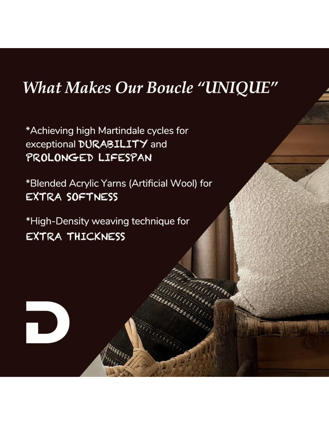 - [Concepto de Diseño Danés] Aporta un nivel divino de comodidad a tu hogar con esta funda de almohada decorativa boucle - Castello. Un detalle de bucle moderno pero atemporal - suave al tacto y cómodo de sostener.
