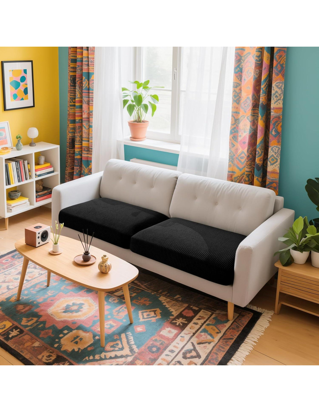 - COBERTURA DEL COJÍN: Con la banda elástica alrededor del borde, la funda del cojín siempre estará en su lugar. No hay necesidad de ajustar después de que alguien se siente en el cojín. Evita que tus muebles sufran desgaste diario, rasguños y otros accidentes.