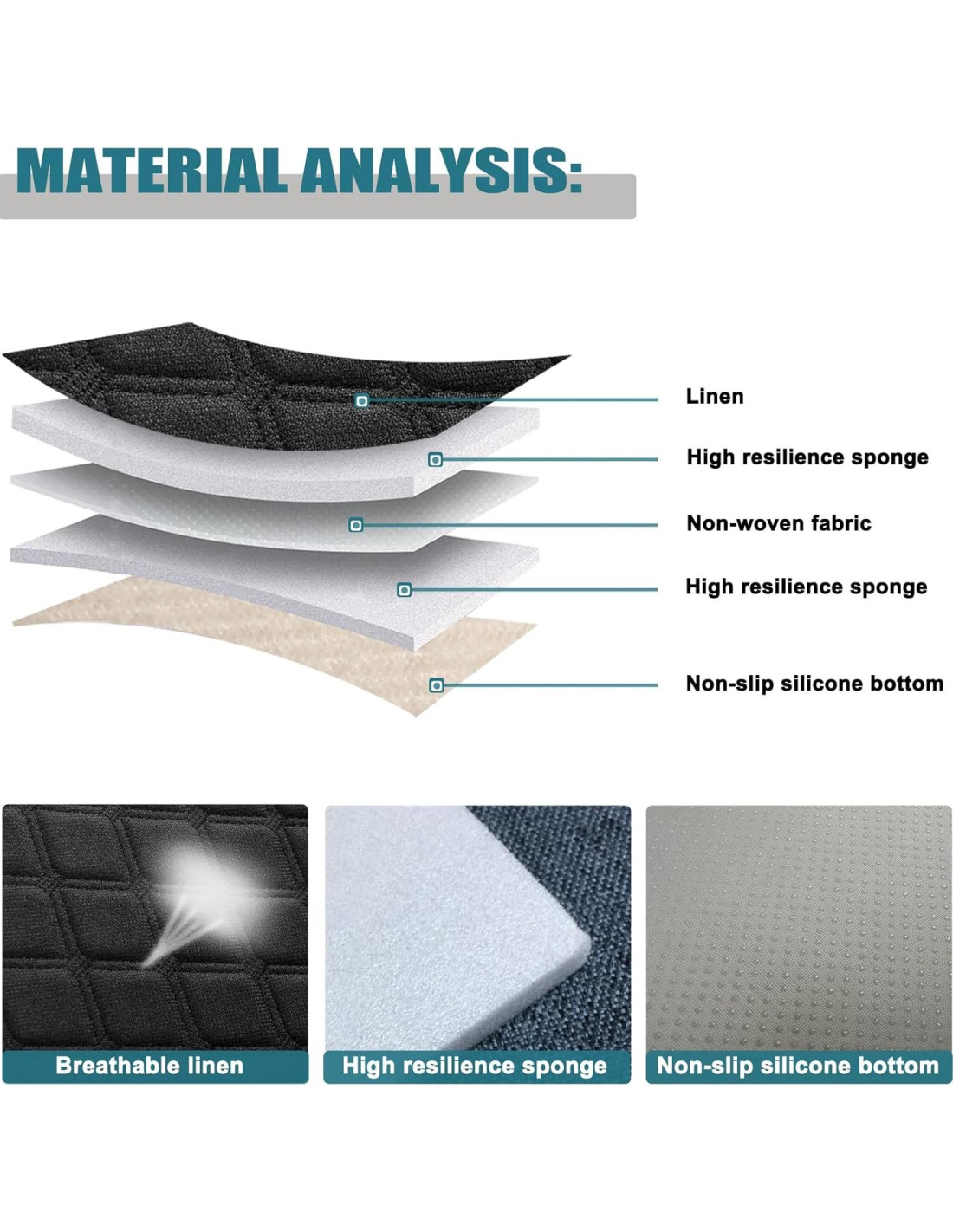 - Transpirable y Suave: Este cojín de asiento de coche está hecho de material de lino ecológico, que es transpirable, absorbente de sudor, suave y amigable con la piel. La tela de lino cuenta con una notable resistencia a los arañazos y durabilidad. Este material es resistente a la fricción y a los pinchazos y muy duradero.