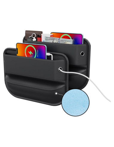 - Manténlo Organizado: Este relleno de espacio entre asientos de coche organiza elementos esenciales como teléfonos móviles, tarjetas, llaves, billeteras y más. Evita que los objetos pequeños caigan en el espacio y se pueden acceder en cualquier momento. La cubierta de cuero proporciona un toque premium