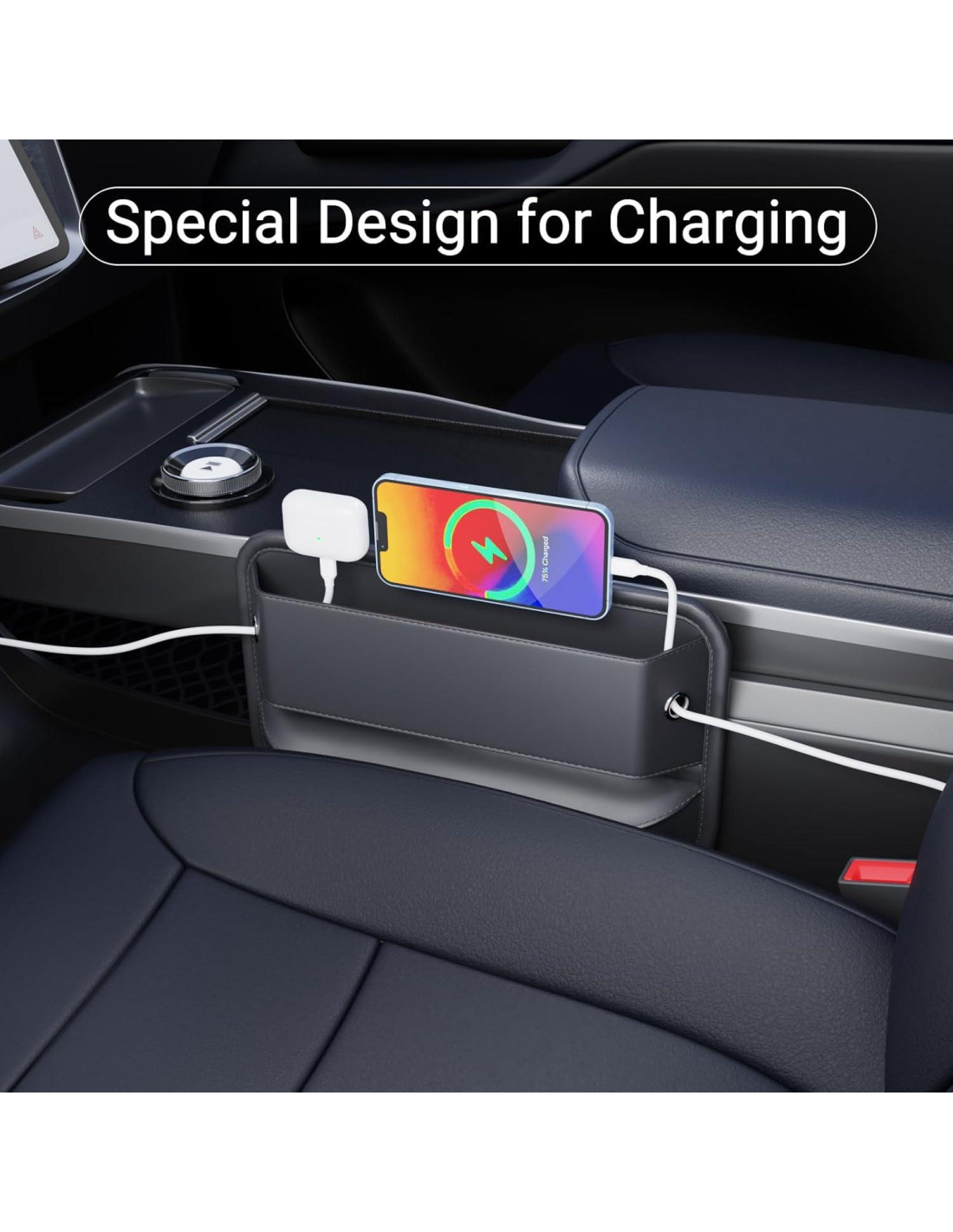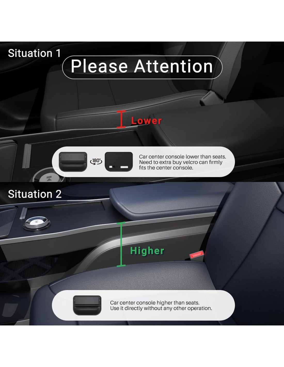 - Característica Extra: Diseño de dos agujeros de carga, el teléfono móvil se coloca en el organizador de espacio entre asientos del coche para cargar en el camino, y es estable y no se cae. Para modelos de consola central baja, se puede comprar un adhesivo adicional para hacerlo más estable