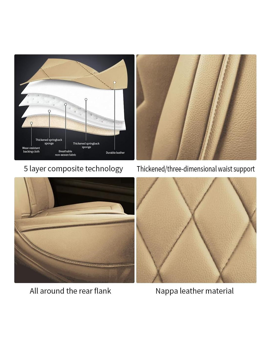- CUERO NAPPA PREMIUM: Cada funda de asiento está hecha de material compuesto de múltiples capas, suave y transpirable, amigable con la piel y cómoda. La parte central está hecha de tela no tejida y espuma de alta resiliencia para brindarte la mejor experiencia de asiento.