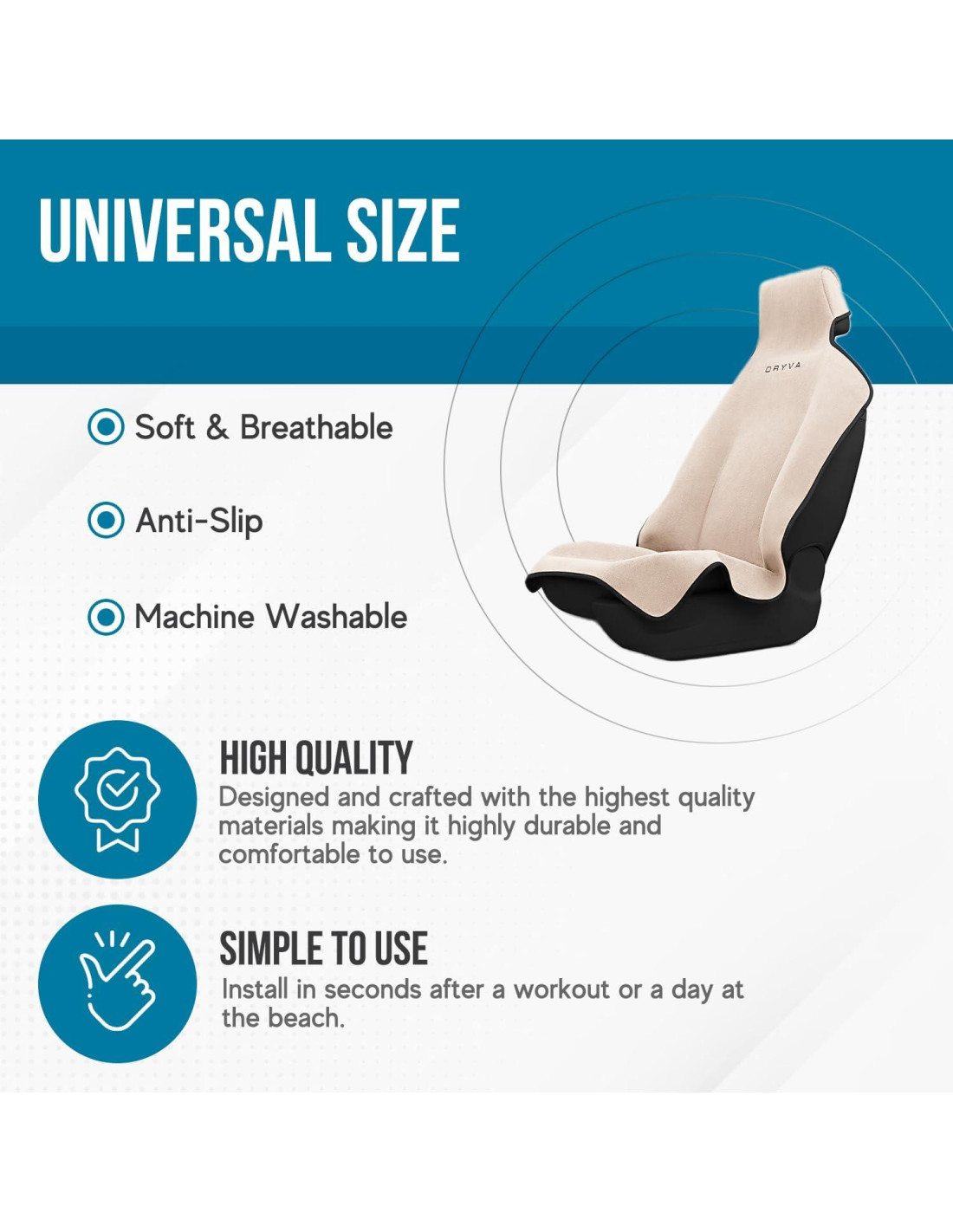 - CÓMODO y TRANSPIRABLE - Construido con microfibra premium, DryvaSeat proporciona la máxima comodidad durante el uso diario. El respaldo antideslizante y la correa de sujeción aseguran que la funda se mantenga en su lugar, incluso al entrar y salir del coche. No más toallas de playa deslizándose por el asiento.