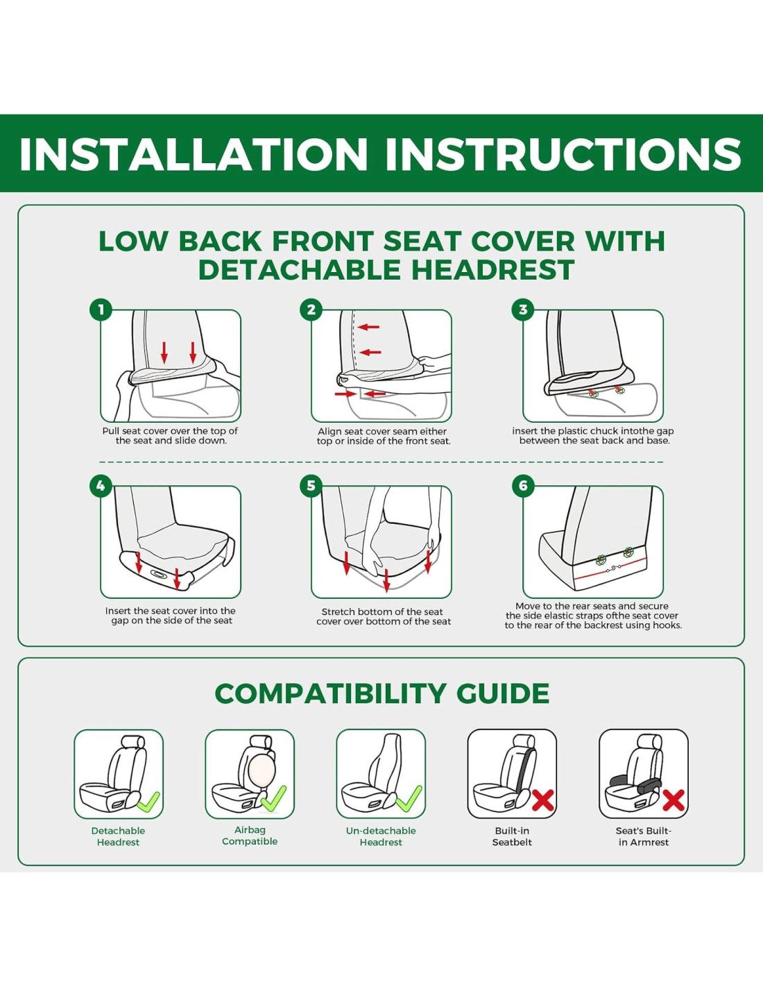 - [Fácil de Instalar] La funda de asiento de coche es un diseño de una sola pieza, muy fácil de instalar. Los 4 ganchos delanteros y traseros incluidos con la funda de asiento son suficientes para fijar fácilmente la funda en el asiento. Si tienes alguna duda sobre la instalación, contáctanos para más ayuda