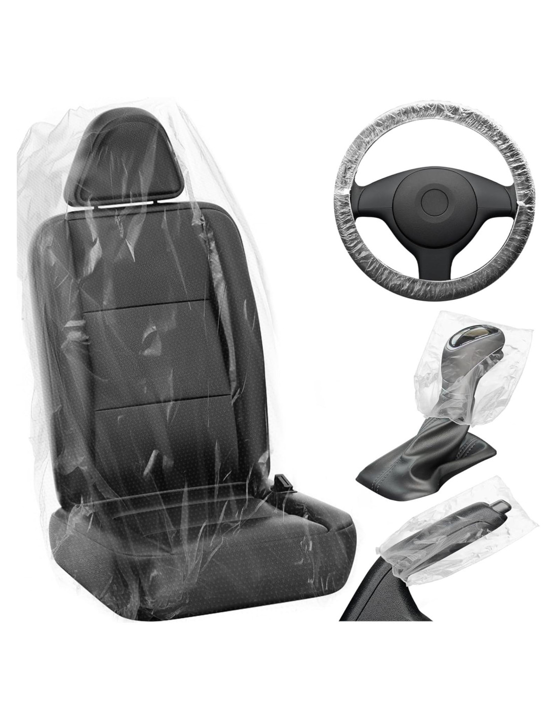 - Kit de Protección Desechable Completo 250 piezas incluyen 100 fundas de asiento de coche, 50 cubiertas de volante, 50 cubiertas de palanca de cambios y 50 cubiertas de freno de mano. Este kit de fundas de asiento de coche desechables es ligero, fácil de almacenar y en cantidad suficiente, proporcionando protección adecuada para el interior de su vehículo