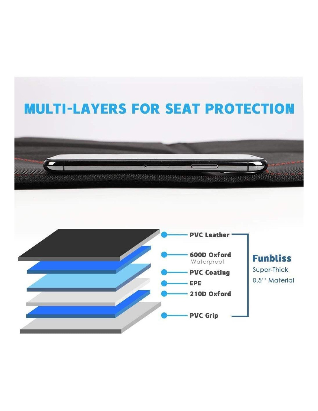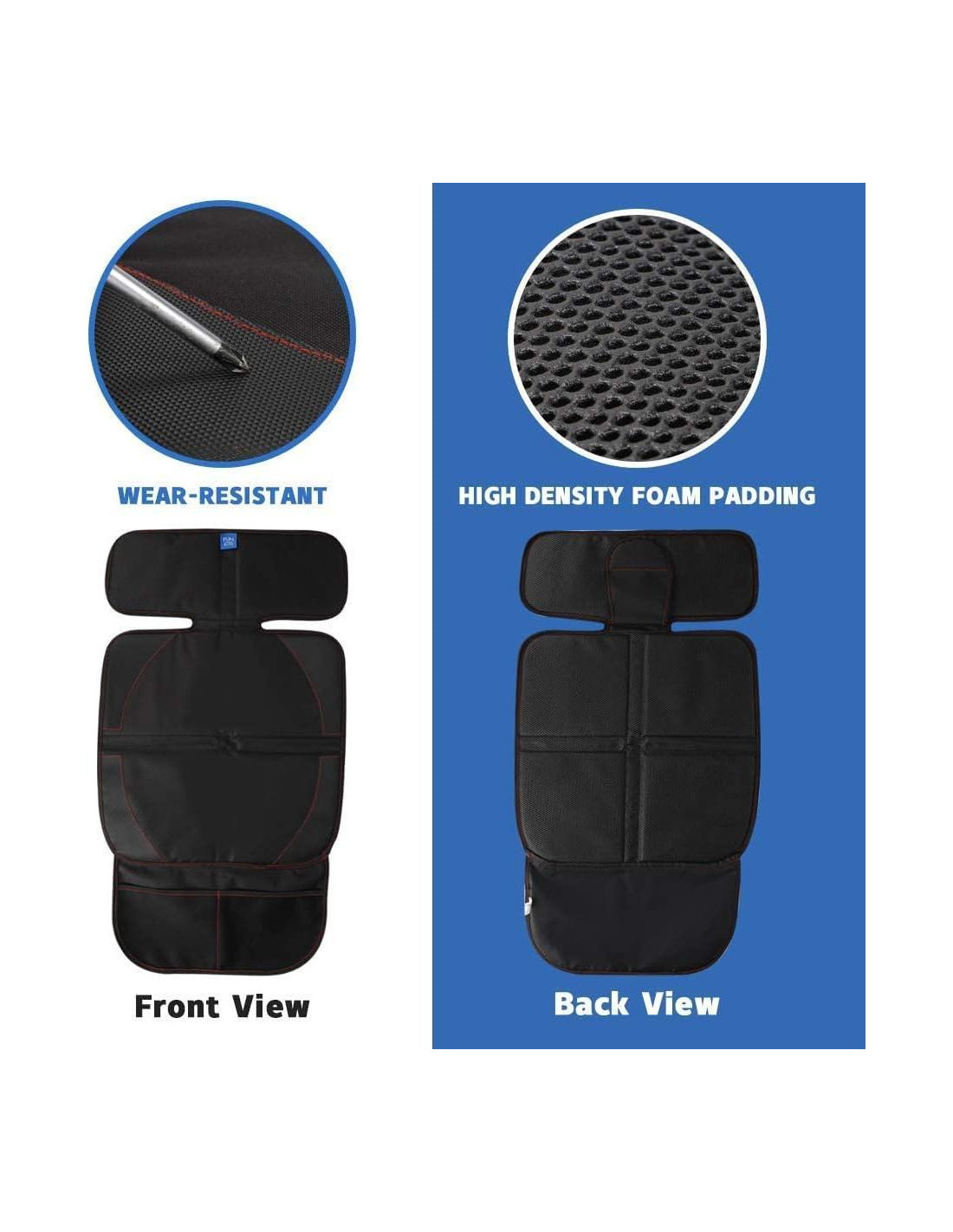 - Impermeable y fácil de limpiar: El protector de asiento de coche Funbliss está hecho con tela Oxford impermeable y acolchado de espuma gruesa, evitará que el agua y otros líquidos destruyan el interior de tu coche, simplemente limpia la suciedad con un paño húmedo. También es una cubierta de asiento perfecta para tus mascotas.