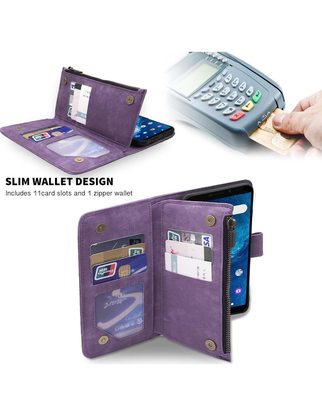 - [BOLSILLOS PARA TARJETAS Y SOPORTE DE VISUALIZACIÓN] : Esta funda de billetera incluye 5 ranuras para tarjetas estándar + 1 ranura para tarjeta de identificación + 1 ranura para efectivo + 1 bolsillo con cremallera, que puedes usar para llevar tu identificación/tarjetas de crédito/débito, licencia de conducir, varios billetes y notas pequeñas sin llevar una billetera voluminosa. El diseño del soporte de visualización manos libres permite que tu teléfono se mantenga de forma independiente, perfecto para videollamadas y ver películas