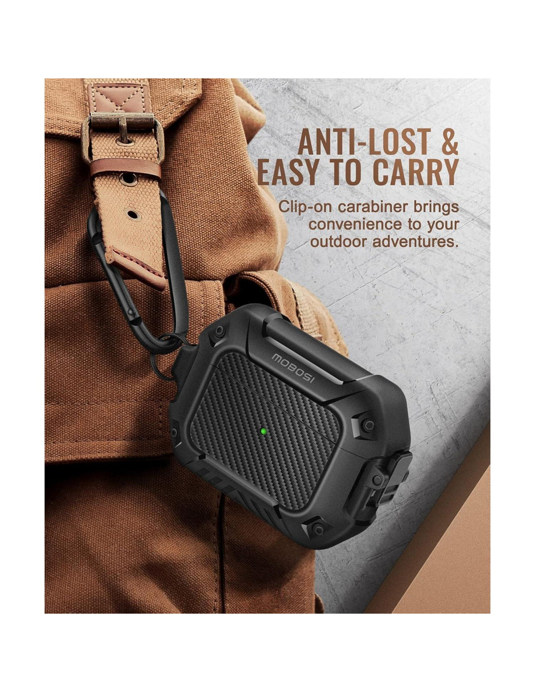 - [Clip de bloqueo seguro y llavero portátil]: El candado de seguridad hecho de material de aleación de aluminio mejora la protección, manteniendo la funda de carga de AirPods Pro de 2/1 generación bien cerrada y siempre protegiendo la tapa de caídas. El mosquetón de metal portátil te permite llevar tus AirPods Pro a cualquier lugar