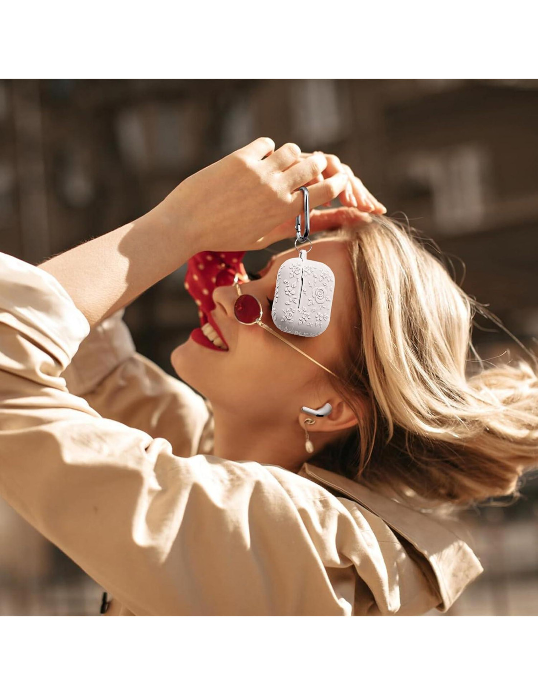 - [Limpiador 3 en 1 y llavero] Junto con una funda floral en relieve, también recibirás 1 x kit de limpieza de auriculares premium y 1 x llavero anti-pérdida. El kit de limpieza, equipado con una punta de metal y cerdas de alta densidad, elimina sin esfuerzo la suciedad de tus auriculares y la rejilla del altavoz de la funda de carga, manteniendo todo con un aspecto nuevo. El resistente llavero anti-pérdida te permite sujetar tus auriculares a bolsas o cinturones para mayor comodidad en movimiento
