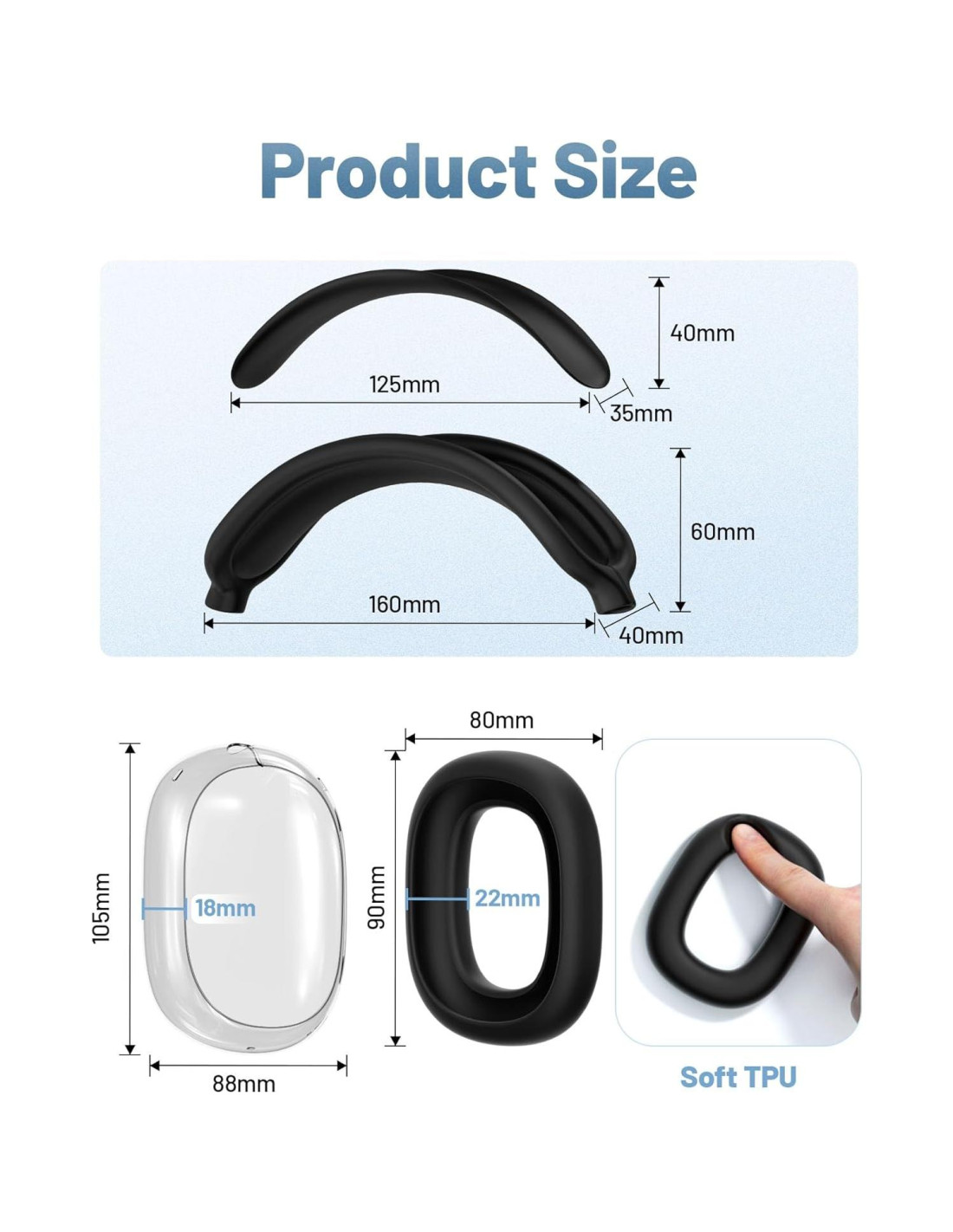 - [6 en 1 Funda AirPods Max] Recibirás 2 x cubiertas de auriculares AirPods Max, 2 x cubiertas de almohadillas de oído AirPods Max, y 2 x cubiertas de banda de cabeza AirPods Max. La suave, ligera y delgada cubierta de auriculares se ajusta perfectamente a los auriculares AirPods Max, minimizando el desgaste diario, y la carcasa no aumenta ningún volumen, mejorando la experiencia de comodidad.