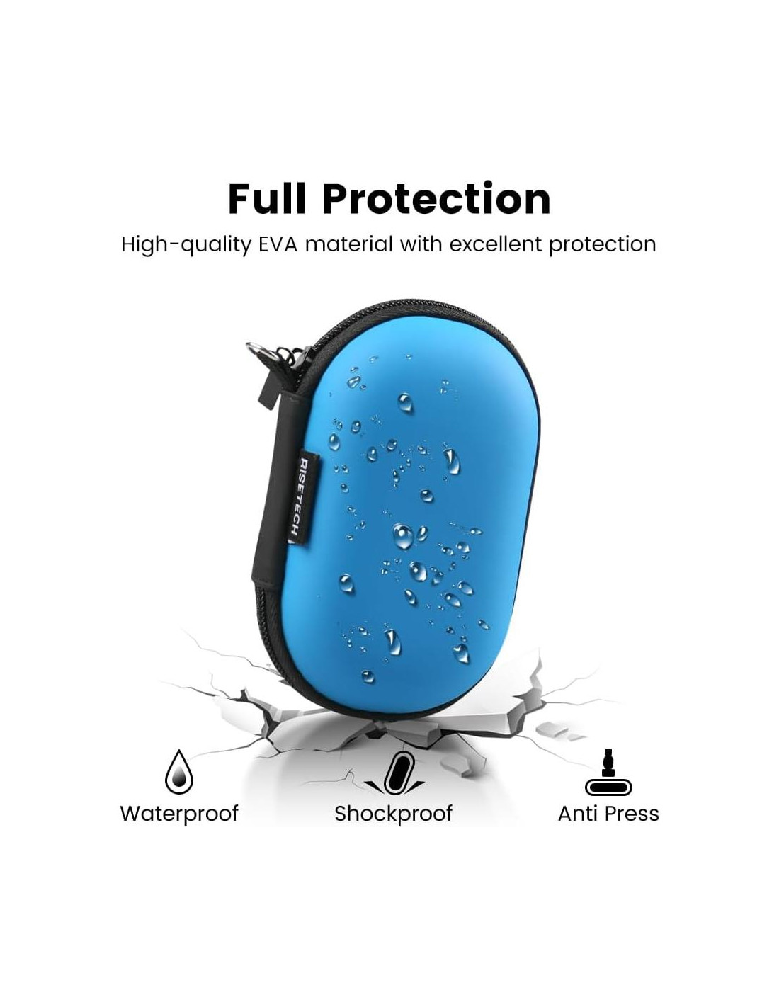 - Almacenamiento seguro La organizadora de auriculares está hecha de material EVA duro y superficie de PU impermeable, efectivamente a prueba de golpes y resistente a la presión. Conveniente para el almacenamiento mientras evita daños por caídas y polvo.
