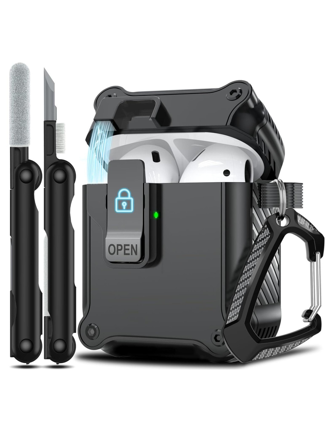 - [Cierre de Seguridad Único & Automático] El diseño mejorado del cierre de seguridad facilita abrir y cerrar. Presiona el botón "ABRIR", la parte superior de la funda se abrirá automáticamente. Mantiene la funda de carga de los AirPods bien cerrada y asegura que la tapa nunca se caiga.