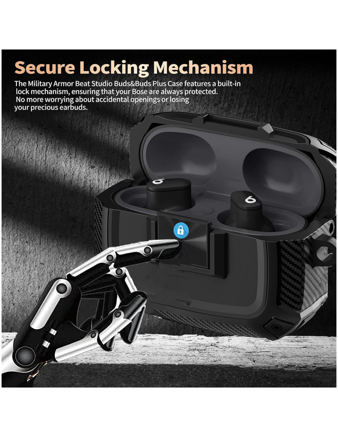 - [A prueba de golpes y Duradero] : Fabricado con materiales de grado militar, esta funda absorbe impactos y proporciona protección confiable contra el desgaste diario, asegurando la longevidad de tus Beats Studios Buds Plus.