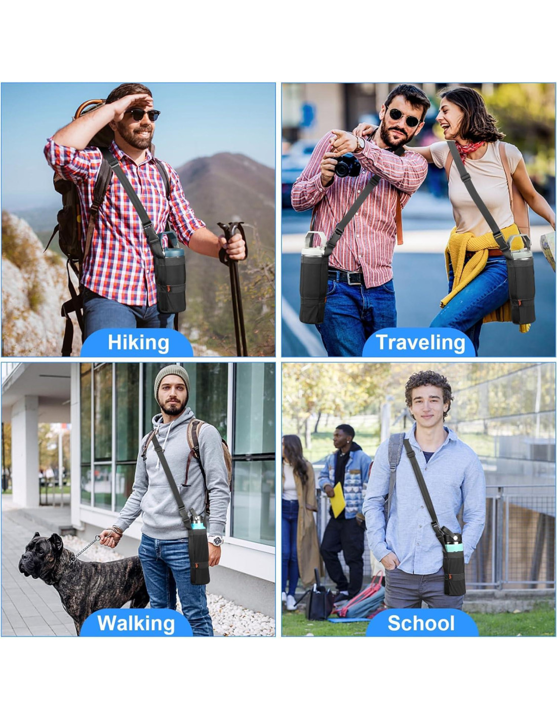 - FÁCIL DE SALIR - Viene con una correa de hombro ajustable, la funda para botellas de agua es adecuada para personas de todas las edades, como adolescentes, adultos y ancianos. Ideal para actividades al aire libre. Buena para pasear al perro, hacer senderismo, pescar, acampar, ir de compras, viajar y hacer ejercicio.