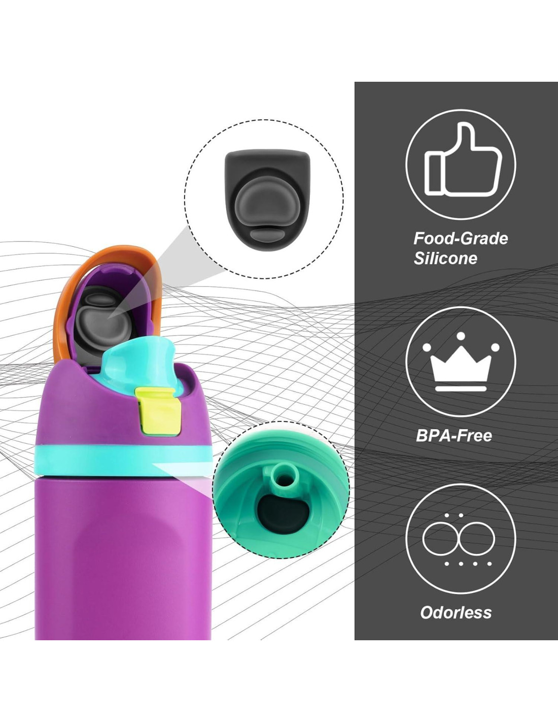 - Compatibilidad: Compatible con 19oz (0.56L) 24oz (0.71L) 32oz (0.95L) 40oz (1.18L), botella de agua de plástico Tritan transparente FreeSip de 25oz (0.74L). Tenga en cuenta que nuestro producto no está patrocinado ni respaldado por, ni afiliado a las marcas con las que es compatible.