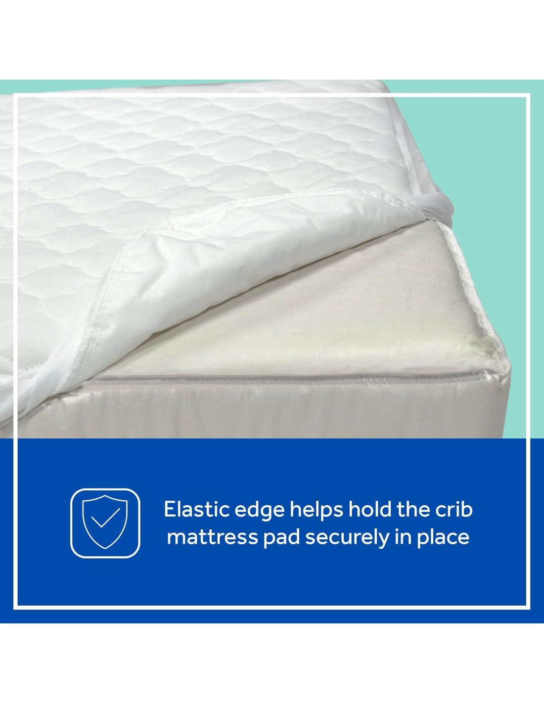 - Almohadilla para Colchón de Cuna con Falda Ajustada Segura - Falda ajustada SecureStay con borde elástico ayuda a prevenir deslizamientos y movimientos. Se ajusta a colchones de cuna de tamaño completo estándar de EE. UU. y colchones para niños