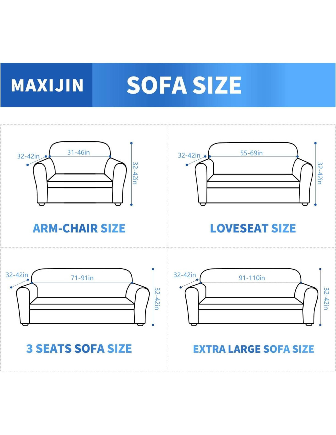 - [Ajuste Personalizado] : Nuestras fundas completas para sofá son de talla única. Se ajustan mejor para FUNDA DE SILLA 31-46" (78-116 cm), FUNDA DE LOVESEAT 55-69" (139-175 cm), FUNDA DE SOFÁ 71-91" (180-231 cm), FUNDA DE SOFÁ XL 91-110" (231-279 cm). Por favor, mida su tamaño de acuerdo con la Guía de Medición en las fotos antes de comprar. Diseño de una pieza para una fácil instalación, disfrute de una instalación sin complicaciones con nuestras fundas de sofá elásticas, se puede completar en 8 minutos siguiendo la Guía de Instalación en las fotos.