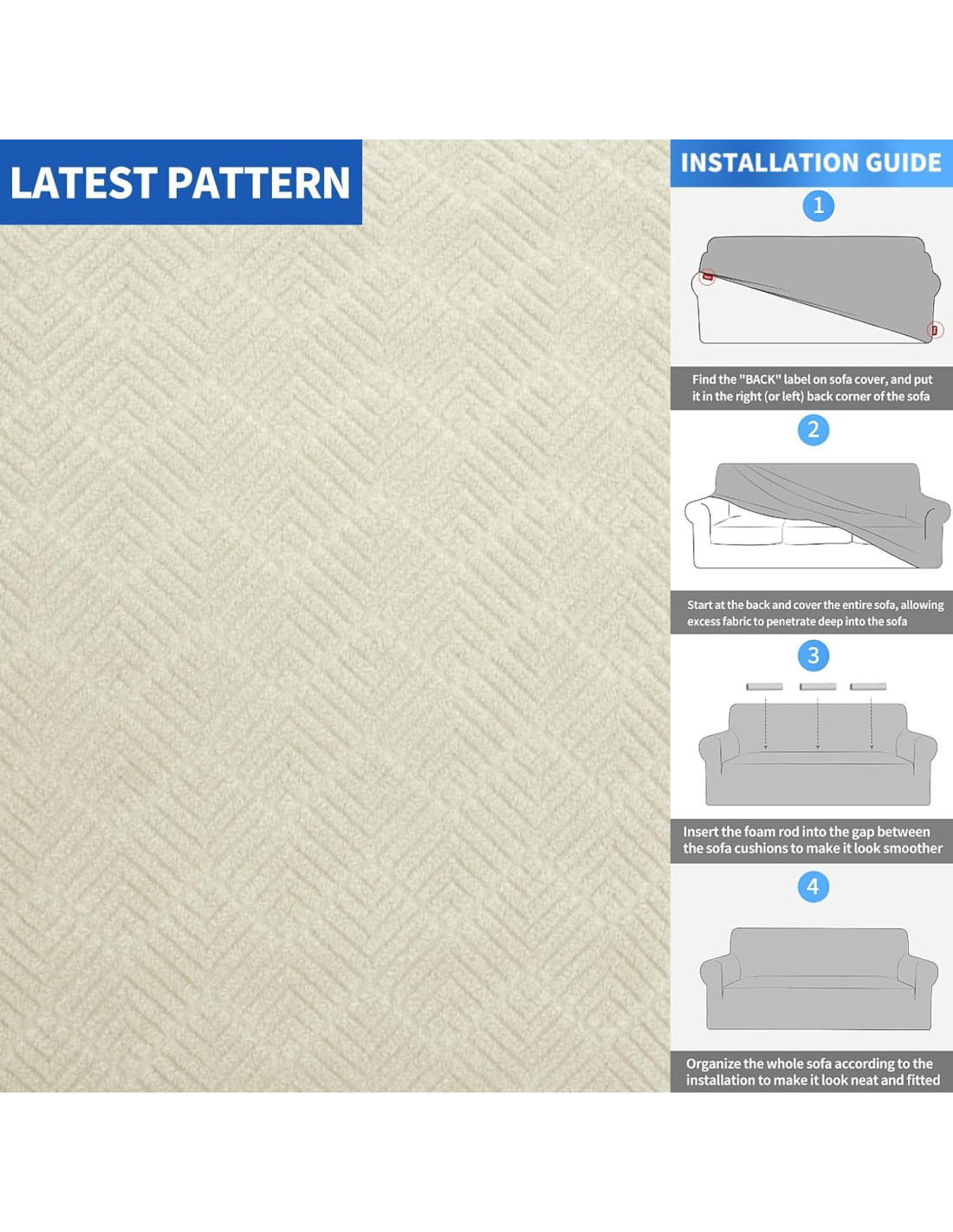 - [Excelente Tela] : Las fundas de sofá elásticas MAXIJIN para sofá de 3 cojines están hechas de tela elástica de alta calidad que es 85% poliéster y 15% spandex. Está adornada con un único pequeño patrón de diamante, lo que hace que la funda del sofá sea moderna y elegante. La tela más gruesa mejorada es duradera para una larga vida útil, además se siente cómoda, suave y transpirable. Adopta tecnología de impresión y teñido activa natural, por lo que el color es más vívido, sin desvanecerse, sin pelusa, saludable y amigable con la piel.