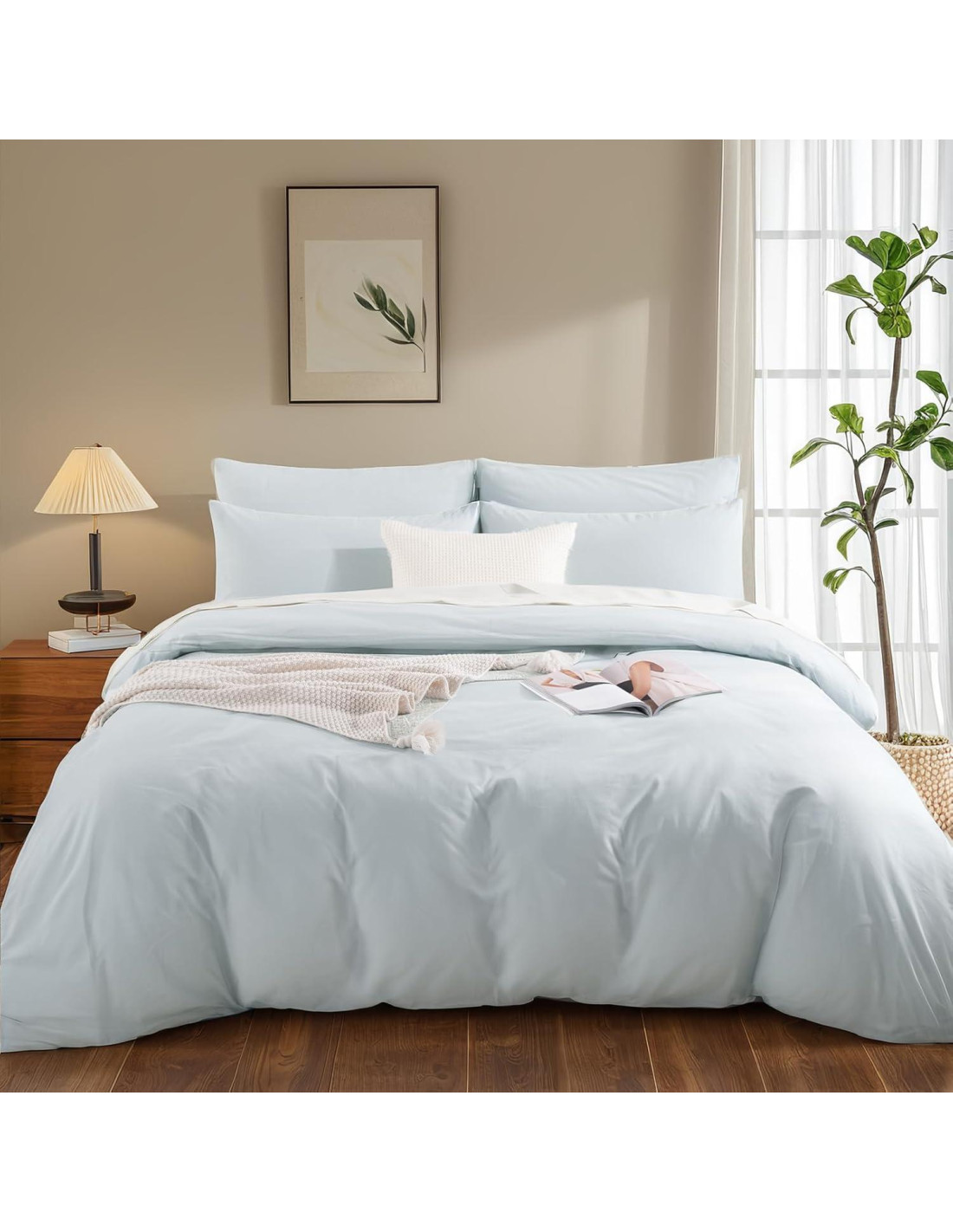 - [100% Algodón Lavado, Transpirable, Mantiene la Forma y Suavidad después de Cada Lavado] Este juego de funda de edredón está hecho de 100% algodón lavado. Es transpirable, te mantiene fresco en verano y seco y cálido en invierno; duradero y suave, la tela de alta densidad mantiene la forma y suavidad de la funda de edredón después de cada lavado.