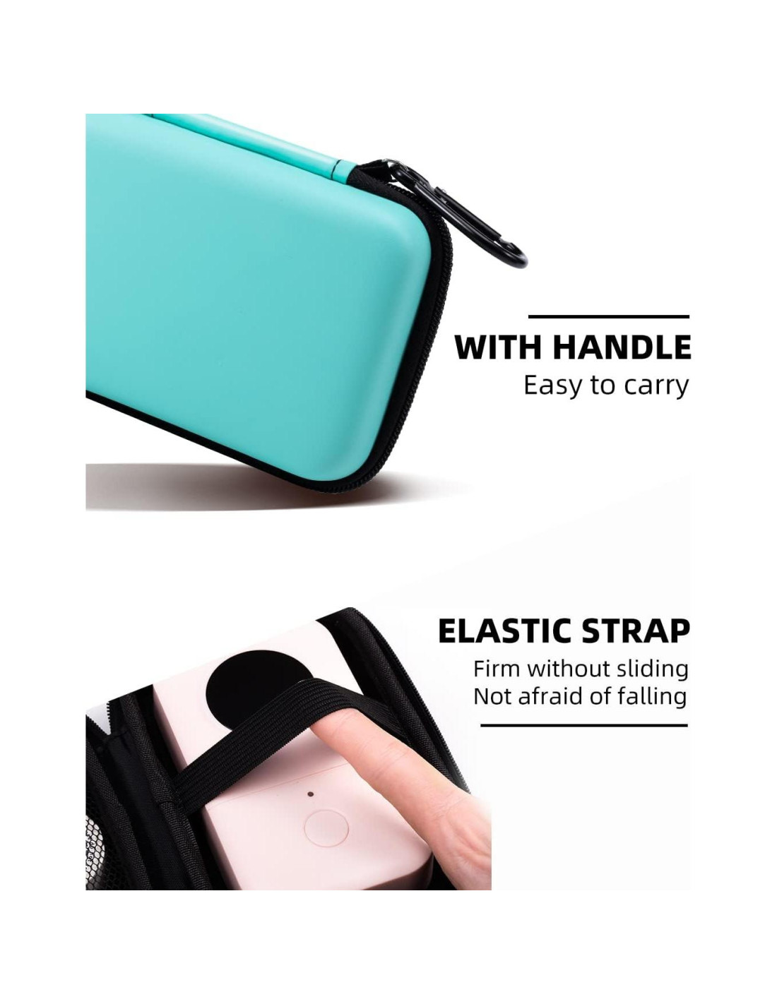 - [Tamaño de la bolsa de almacenamiento]- 100mm x 150mm x 60mm, puede acomodar una impresora y una pequeña cantidad de rollos de papel y un cable USB. La caja de protección dura Phomemo es impermeable, a prueba de polvo y a prueba de golpes. Tiene un compartimento de almacenamiento incorporado y un cinturón de parachoques para proteger eficazmente la impresora de daños.